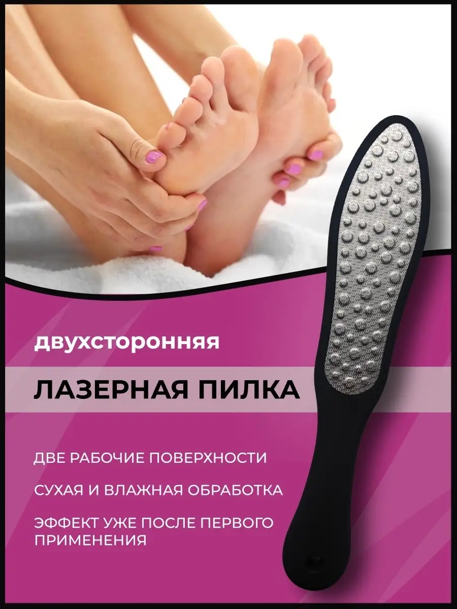 Профессиональная двухсторонняя терка для педикюра поможет в домашних условиях убрать огрубевшую кожу с ваших ножек и добиться эффекта гладких пяток. На металлической поверхности с помощью лазера сделаны микрозубчики, которые за 10 пропилов снимут 1 мм огрубевшей кожи. Другая сторона лазерной пилки отполирует уже подготовленный участок до идеального состояния. Проводить такую процедуру можно как на распаренной коже ног, так и на сухой. Между подходами нужно промывать рабочую область в тёплой воде. По завершении процедуры следует намазать ножки увлажняющим кремом, при необходимости продезинфицировать терку. Алмазная пилка для ног не только отшелушивает, но и шлифует кожу, благодаря ей пятки становятся мягкими и нежными, без микротравм. Профессиональные пилки для ног выпускают только из натурального сырья специальной нержавеющей стали, пемзы, пластмассы. Лазерная металлическая терка для пяток прекрасно удаляет натоптыши, мозоли, ороговевшие участки и гарантирует абсолютно безопасную обработку. Пилка педикюрная послужит прекрасным подарком на день рождение, новый год, 8 марта.
