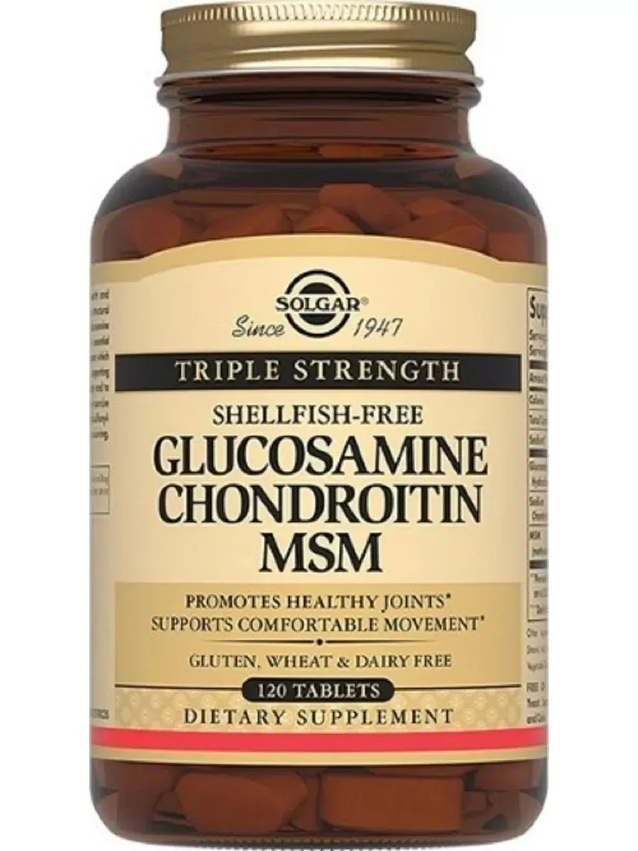 Glucosamine and chondroitin are the main components of cartilage tissue. Taking glucosamine, chondroitin, and MSM together stimulates the natural processes of articular cartilage restoration, improves joint mobility, and prevents the formation of chondroitin.