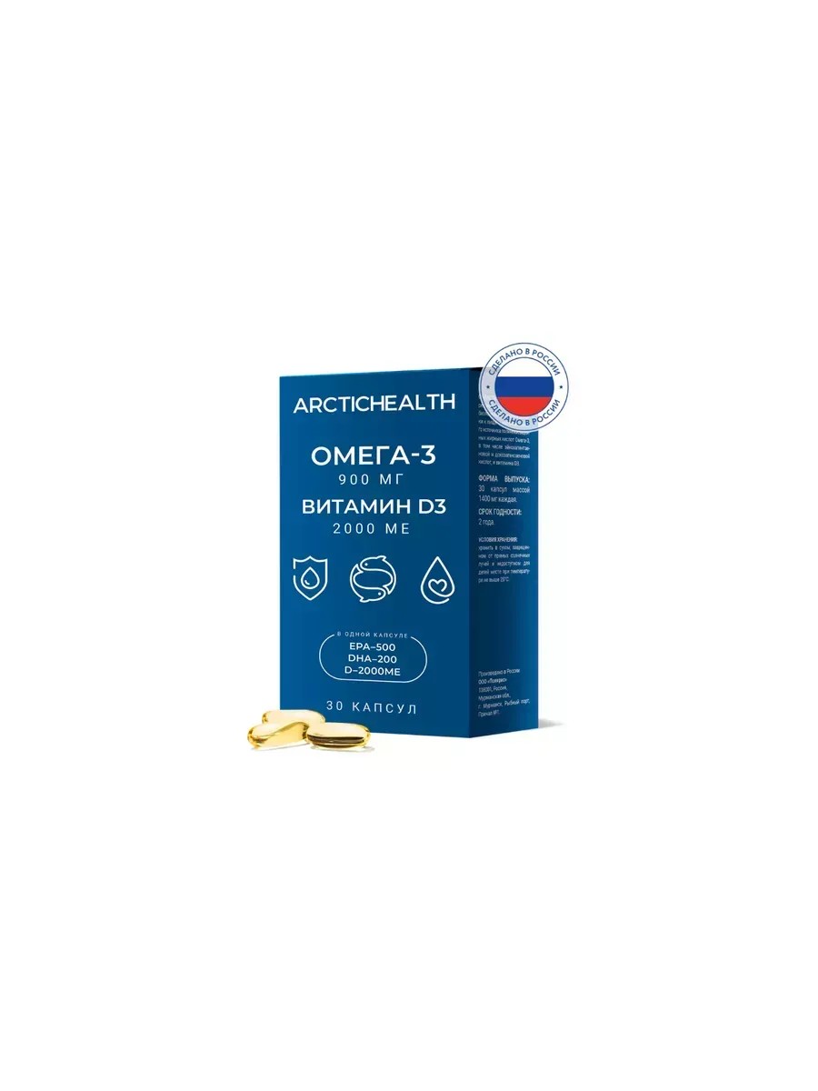 Beautiful life Omega-3 900 mg and vitamin D3 2000 IU 30 pcs. Capsules mass 14