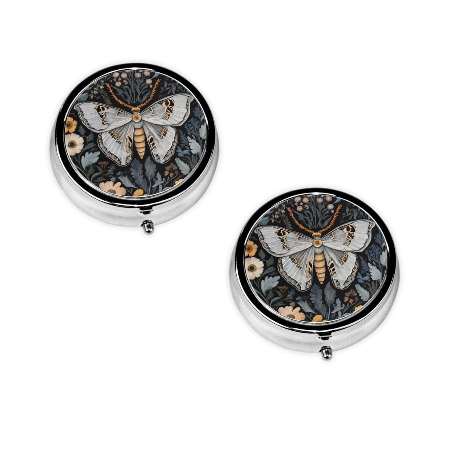 Beautiful Moth Printed Mini Round Pill Box Pill Box 3 Compartment Medicine Pill Case Pill Organizer Travel Pillbox Portable Pill Box for Pocket Home Office Use