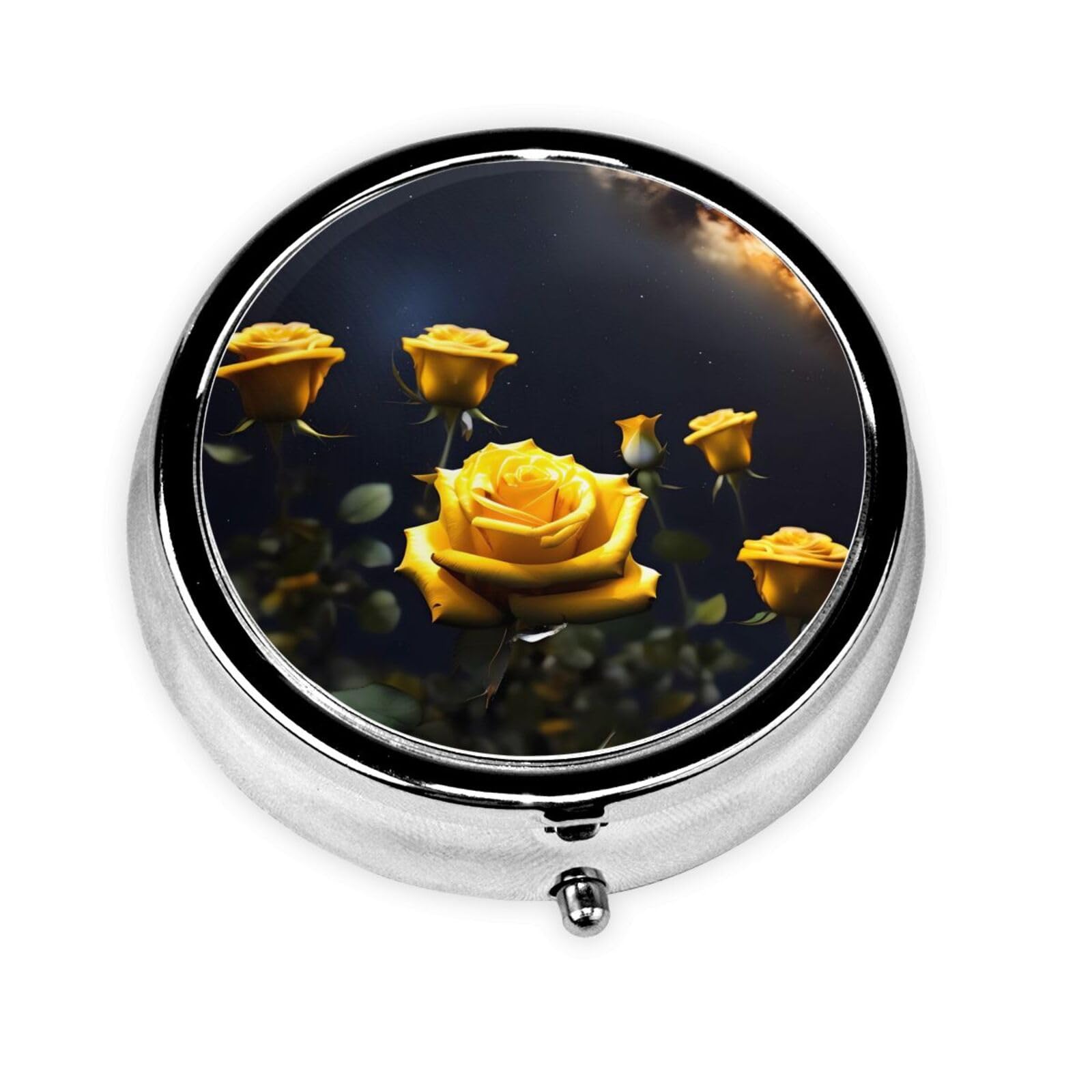 Beautiful Yellow Roses Round Mini Pill Box : Our Pill Box Is Made Of Metal Plated With Iron To Resist Daily Wear And Tear And Prolong Its Life.2.0 X 2.0 X 0.7 Inches (Approx. 4.6 X 4.6 X 1.8 Centimeters), *This Round Mini Pill Box Is Compact And Lightweight, With 3 Plastic Compartments And A Hinged Closure Inside. The Round Mini Pill Box Takes Up Little Space And Can Be Carried In Your Pocket Or Purse, Perfect For Traveling.