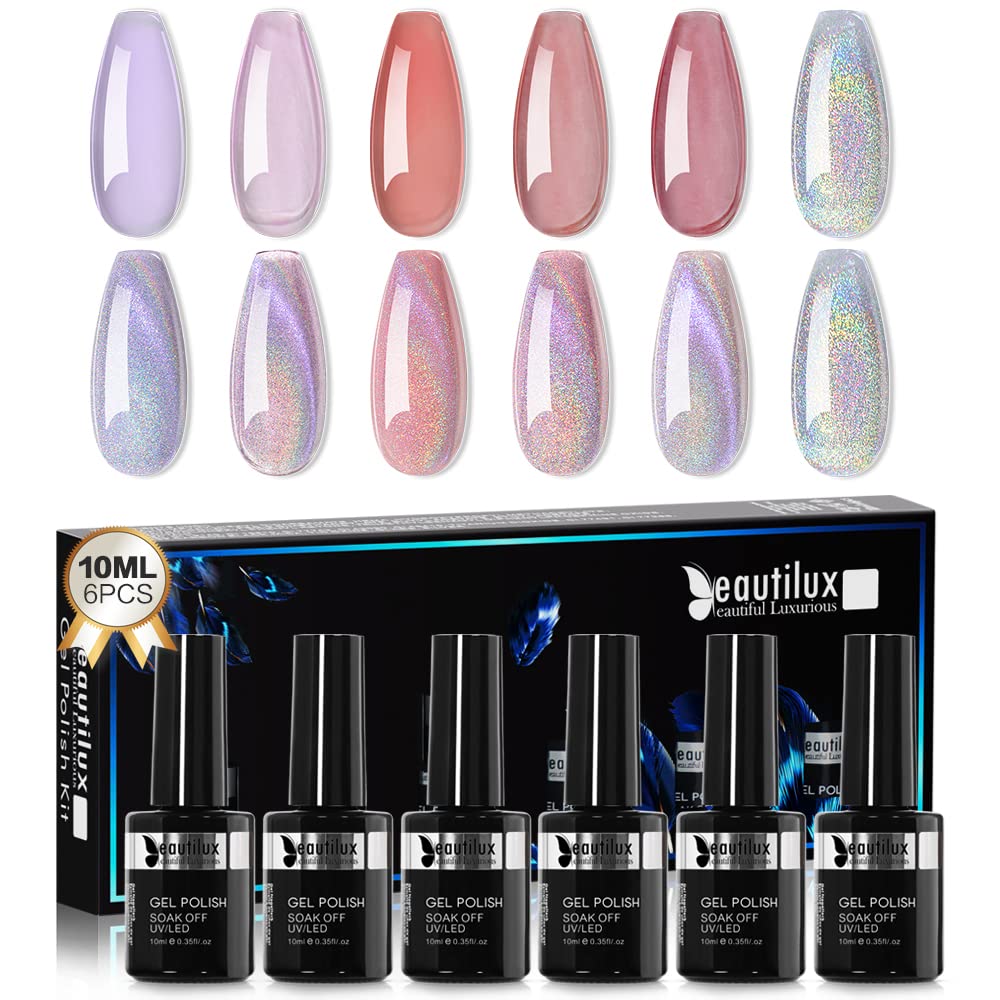Easy to apply and remove: It is economically and convenient to achieve perfect nails at home and in professional salons.Highly pigmented, hardens under UV or LED nail lamp for 60–120 seconds and envelops your nails with a smooth, long-lasting, flawless cover with brilliant shine.Long -lived use: The nail gel has a good viscosity, the holographic cat eye angel has a magnetic glittering performance with high density.It lasts more than 3-4 weeks.High quality: The semi -persistent nail polish from Beautilux consists of high -quality resin and pigments in nano quality, is non -toxic and low in smell and does not harm skin and nails.It is an EU-compliant and has CPSR and CPNP certifications so that you can use it without worry.5 colors nude jelly gel polish: nude colors are low colors, natural, elegant and versatile, perfect transparency helps you to achieve your ideal nail designs, whether for French-nails, for a complete cover or nails with special nail artificialTo design designs.The use of the CAT-Eye gel with this nude gel nail achieves several enchanting CAT-EYE effects.Universal laser cat eye gel: Can be used with different basic colors to create the colorful holographic and dreamy cat eye, e.g.B. Galactic hole effect, starry sky effect etc. Suitable for all occasions to radiate the charm of women at any time and everywhere.Einfach aufzutragen und zu entfernen: Es ist wirtschaftlich und bequem, perfekte Nägel zu Hause und in professionellen Salons zu erzielen. Hoch pigmentiert, härtet unter UV- oder LED-Nagellampe für 60–120 Sekunden aus und umhüllt Ihre Nägel mit einer glatten, lang anhaltenden, makellosen Abdeckung mit brillantem Glanz. Langlebige Anwendung: Das Nagelgel hat eine gute Viskosität, das holografische Katzenaugengel hat eine magnetische Glitzerleistung mit hoher Dichte. Gut geschützt hält es mehr als 3-4 Wochen. Hohe Qualität: Der semipermanente Nagellack von Beautilux besteht aus hochwertigem Harz und Pigmenten in Nanoqualität, ist ungiftig und geruchsarm und schadet Haut und Nägeln nicht. Es ist EU-konform und verfügt über CPSR- und CPNP-Zertifizierungen, sodass Sie es unbesorgt verwenden können. 5 Farben Nude Jelly Gel Polish: Nude-Farben sind niedrige Farbtöne, natürlich, elegant und vielseitig, perfekte Transparenz hilft Ihnen, Ihre idealen Nageldesigns zu erzielen, egal ob für French-Nägel, für eine vollständige Abdeckung oder um Nägel mit speziellen Nail Art-Designs zu gestalten. Die Verwendung des Cat-Eye-Gels mit diesem Nude-Gel-Nagel erzielt mehrere bezaubernde Cat-Eye-Effekte. Universelles Laser-Katzenaugen-Gel: Kann mit verschiedenen Grundfarben verwendet werden, um das farbenfrohe holografische und verträumte Katzenauge zu erzeugen, z. B. galaktischer Locheffekt, Sternenhimmeleffekt usw. Für alle Gelegenheiten geeignet, um jederzeit und überall den Charme von Frauen auszustrahlen im Fokus der Öffentlichkeit.Beautilux Rainbow Cat's Eye 1 Flasche + 5 Nude Farben Gel-Nagellack-Set, Dream Rainbow Cat's Eye Magnetisches UV-Gel funkelnde Auroras Laser-Nagelkunst, halbpermanentes LED-Nagelkunstgel (6x10ml) BCM-BN-02