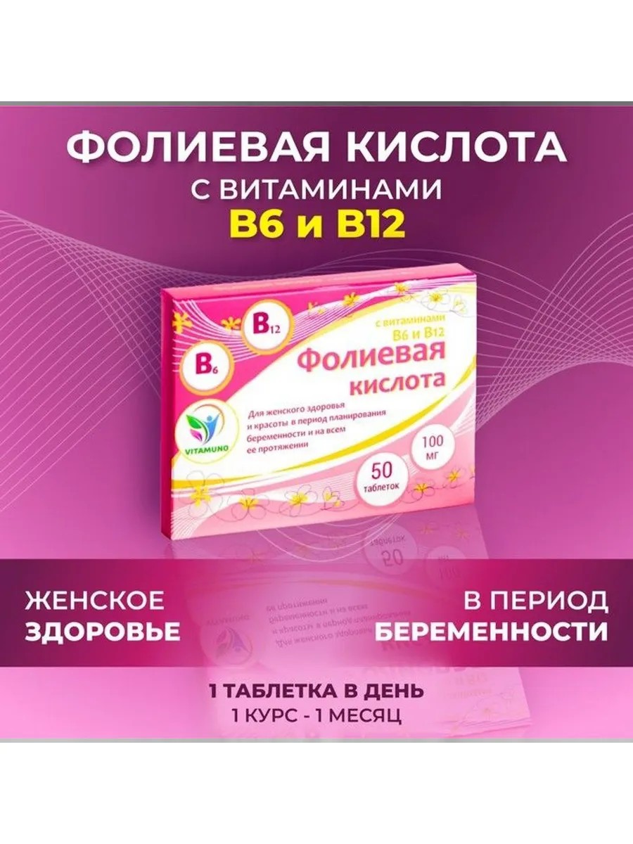 Рекомендуется: в качестве биологически активной добавки к пище – дополнительного источника фолиевой кислоты и витаминов В6 и В12.Фолиевая кислота является фактором роста – она необходима организму для производства клеток кожи, слизистых, волос. Для женщины, планирующей беременность, фолиевая кислота является самым важным витамином, так как именно она отвечает за формирование плода и рост клеток. На ранних этапах беременности даже кратковременный дефицит фолиевой кислоты чреват развитием дефектов нервной системы у плода.Помимо участия в создании клеток плода, фолиевая кислота принимает участие в образовании всех форменных элементов крови. Кроме того, она обеспечивает хорошее настроение, участвуя в обмене биологически активных веществ серотонина и адреналина, которые играют важную роль в состоянии нервной системы.Витамин В12 и фолиевая кислота являются взаимосвязанными витаминами, поэтому рекомендуется их совместный прием. Недостаток витамина В12 приводит к развитию частичной или вторичной недостаточности фолиевой кислоты.Витамин В6 участвует в превращениях аминокислот, метаболизме триптофана, липидов и нуклеиновых кислот, участвует в поддержании иммунного ответа, в процессах торможения и возбуждения в центральной нервной системе, способствует нормальному формированию эритроцитов. Способствует поддержанию нормального уровня гомоцистеина в крови. Недостаточное потребление витамина В6 сопровождается повышенной утомляемостью, депрессивным состоянием, нервозностью, ухудшением состояния кожи.Способ применения: взрослым по 1 таблетке в день во время еды, обильно запивая водой. Продолжительность приема – 1 месяц. При необходимости прием можно повторить.Состав: носитель микрокристаллическая целлюлоза (Е460), пиридоксина гидрохлорид, крахмал картофельный, антислеживающий агент стеарат кальция (Е470), фолиевая кислота, цианокобаламин.Противопоказания: индивидуальная непереносимость компонентов. Беременным и кормящим женщинам принимать под контролем врача.Перед применением реком