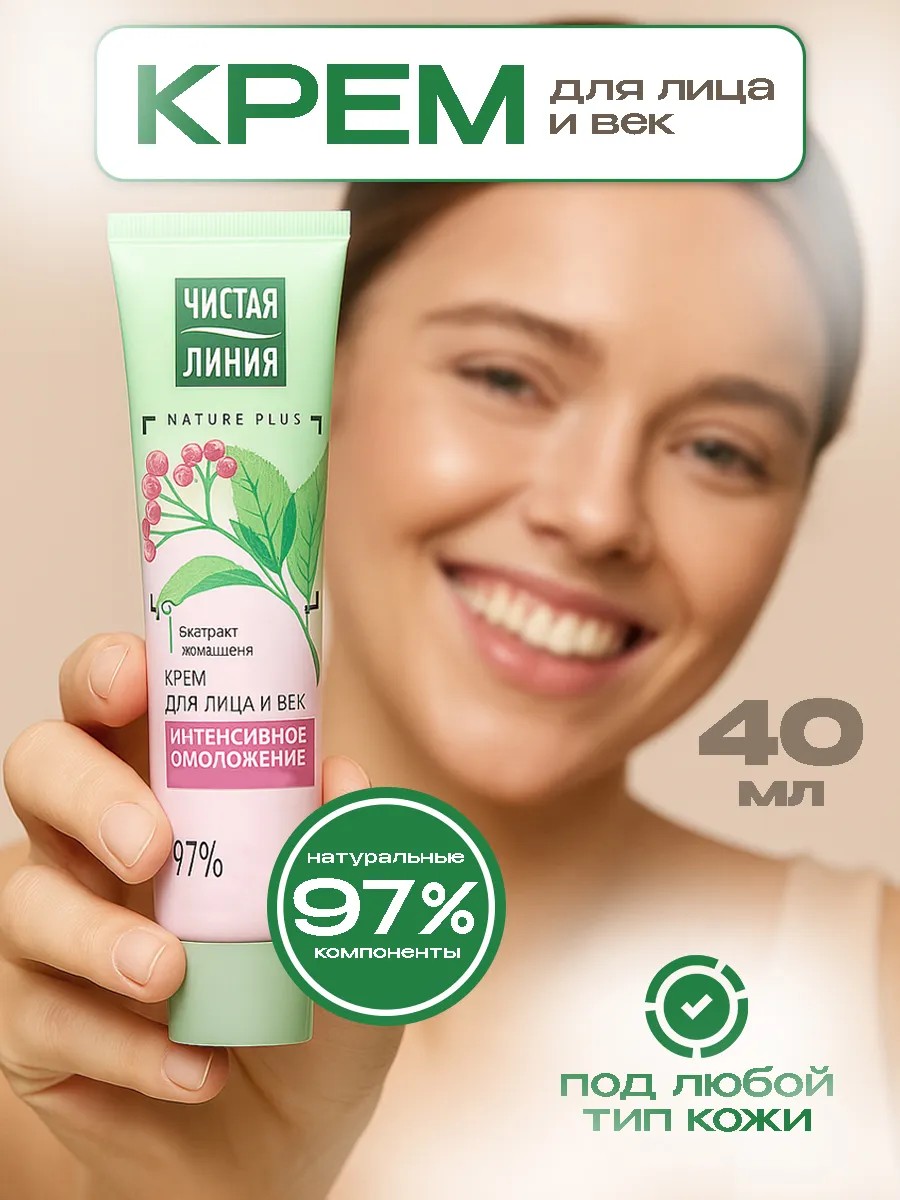 Крем для лица "Чистая Линия"антивозрастной с коллаген-активатором — это инновационный антивозрастной уход для женщин 30+, сочетающий 97% натуральных компонентов с передовыми косметическими технологиями. Этот увлажняющий крем для лица содержит уникальный комплекс Nature Plus, включающий экстракты вербены, пиона и женьшеня, а также ценные масла миндаля, льна и оливы, которые работают синергетически для достижения видимого омолаживающего эффекта. Антивозрастной крем для лица не просто маскирует признаки старения, а активно борется с их причинами: коллаген-активатор стимулирует естественную выработку коллагена, экстракт женьшеня обеспечивает мгновенный лифтинг-эффект, а масло льна и оливы интенсивно увлажняют кожу, устраняя сухость и чувство стянутости. Универсальная формула крема делает его идеальным решением для всех типов кожи: для сухой кожи лица он становится спасением от шелушения, для жирной кожи — легким некомедогенным уходом, а для комбинированной кожи помогает нормализовать баланс. Используйте его как дневной крем для лица под макияж или как ночной крем для интенсивного восстановления — в любом случае вы получите заметный результат уже через 2 недели регулярного применения. Особенностью этого питательного крема является его способность не просто временно улучшать состояние кожи, а восстанавливать ее естественные механизмы регенерации благодаря пептидам вербены и антиоксидантам пиона. Наносите антивозрастной крем утром и вечером на очищенную кожу легкими массажными движениями, уделяя особое внимание зонам с выраженными морщинами. Объем 40 мл в удобном флаконе рассчитан на 2-3 месяца ежедневного использования. Произведено в России в соответствии с международными стандартами качества, что подтверждается сертификатом ЕАС. Этот крем для лица — ваш надежный союзник в борьбе за молодость и красоту кожи после 30 лет