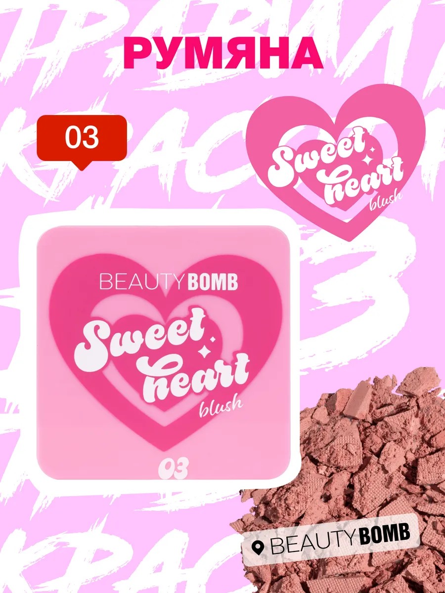 Beauty Bomb Румяна Sweetheart тон 03, матовый светло-бордовый, 4,5 г