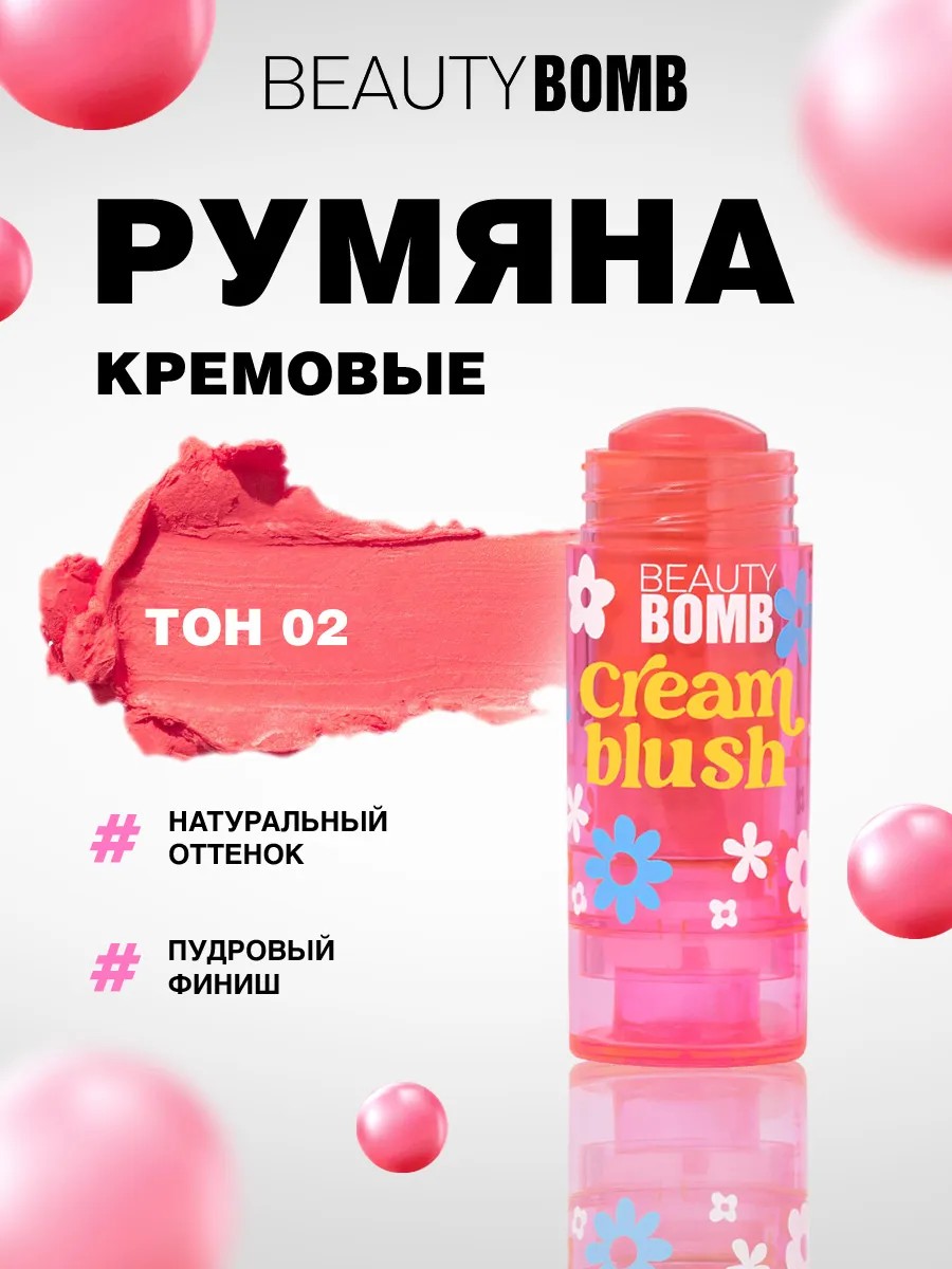 Beauty Bomb Румяна для лица кремовые в стике, тон 02 ярко-розовый