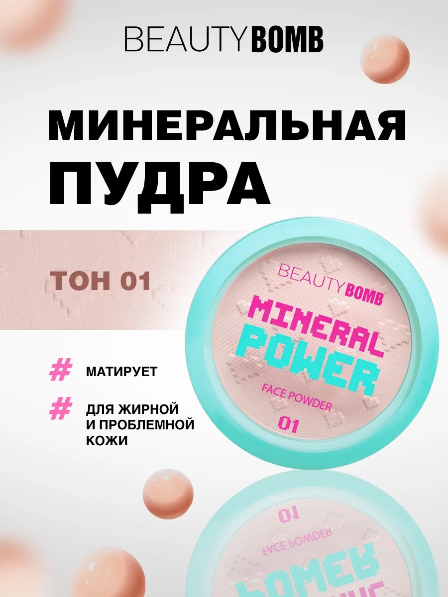 Beauty Bomb Пудра для лица матирующая минеральная, 01 светло-бежевый