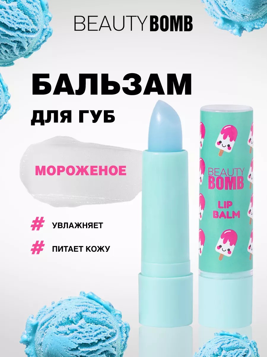 Очень милые бальзамчики в стике для ухода за губами! Яркая упаковка и цвет текстуры радуют глаз и привлекают внимание. Бальзамы увлажняют и питают кожу, а еще вкусно пахнут. Выбирай, что тебе больше нравится: ароматная клубника, спелая черника, сахарный арбуз или нежнейшее молочко. Очень милые бальзамчики в стике для ухода за губами! Яркая упаковка и цвет текстуры радуют глаз и привлекают внимание. Бальзамы увлажняют и питают кожу, а еще вкусно пахнут. Выбирай, что тебе больше нравится: ароматная клубника, спелая черника, сахарный арбуз или нежнейшее молочко. Beauty Bomb Бальзам для губ Bla-bla-balm, тон 04 мороженое – это уникальная косметика. Этот гигиенический стиковый бальзам увлажняет и придает губам легкий оттенок. Прозрачный блеск создаёт нежное и естественное сияние, делая губы ухоженными.