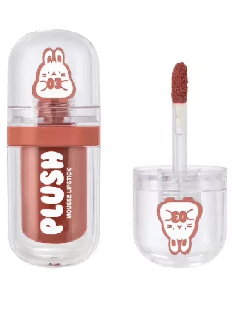 Муссовая помада Plush, словно неощутимое облачко на губах, переместит тебя в настоящую дораму. У нее вельветовая текстура, которая оставляет мягкий матовый финиш и не сушит губы. Выбирай оттенок под любой случай, будь то ночевка у подруги или концерт любимого айдола! С помощью маленького пушистого аппликатора можно создать четкий контур или эффект зацелованных губ. Милая двухслойная упаковка в корейском стиле украсит твою косметичку. На крышке есть тоноуказатель, а номер цвета держит в своих лапках милый зверек.