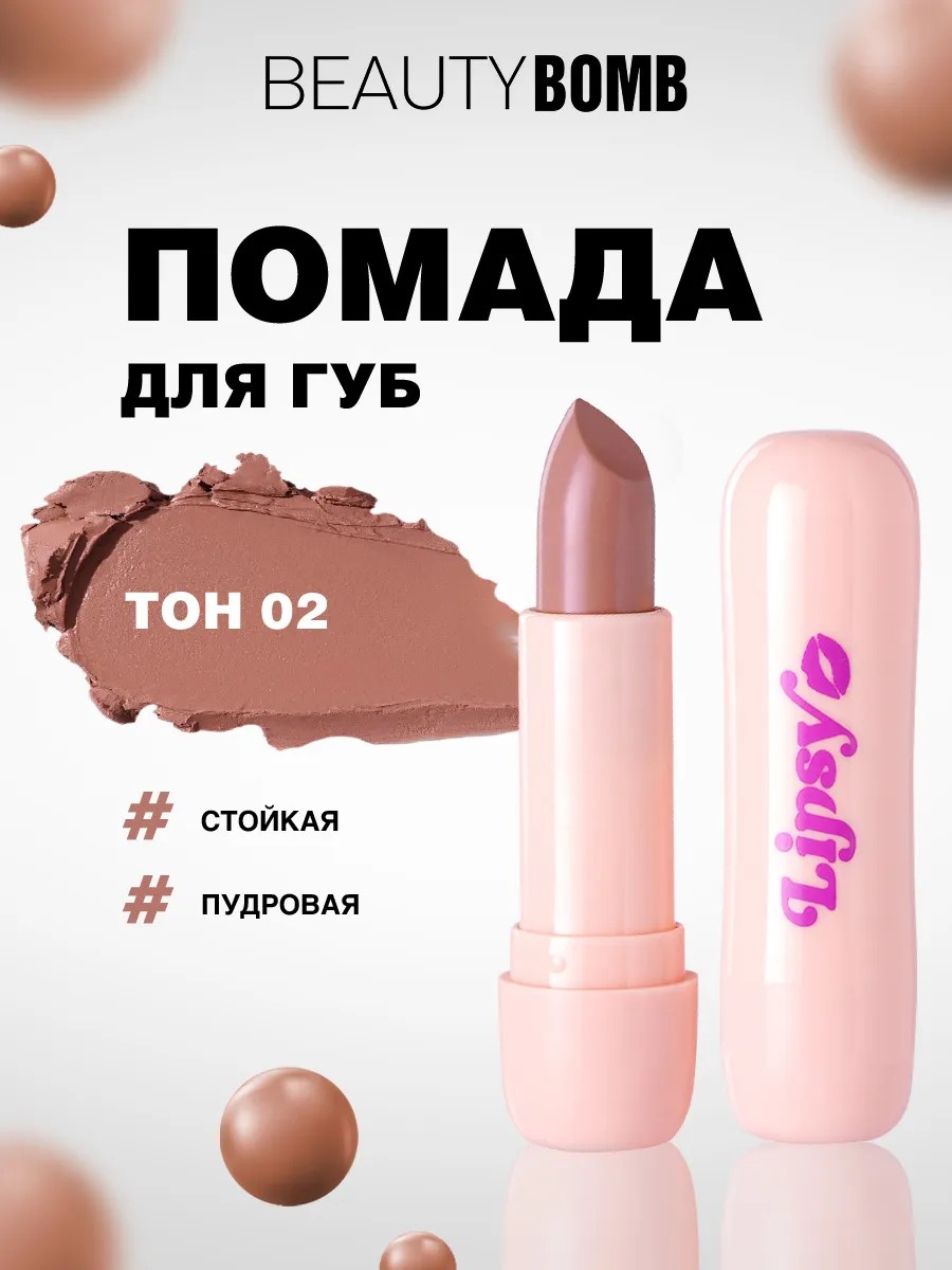 Beauty Bomb Помада для губ в стике Lipsy Lipstick, тон 02.