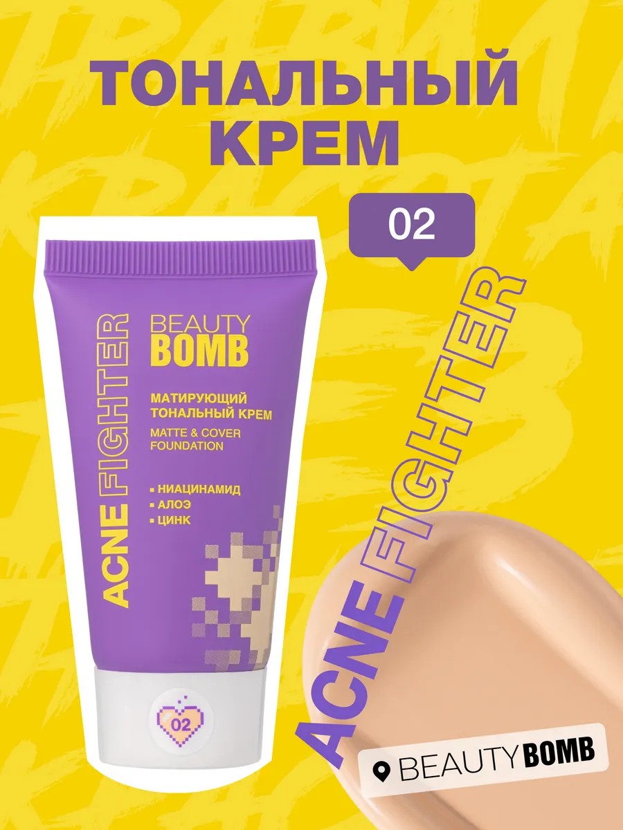 Супергерой вернулся! Тональный крем Acne Fighter от Beauty Bomb ( Бьюти Бомб ), разработанный специально для подростков, теперь в новом дизайне. Тональная основа легко наносится и распределяется, выравнивая кожу. Тональный крем с устойчивой текстурой с естественным матовым финишем создает плотное покрытие, которое маскирует даже заметные несовершенства. А ниацинамид, экстракт алоэ и цинк помогают справиться с воспалениями, даже когда ты носишь макияж!