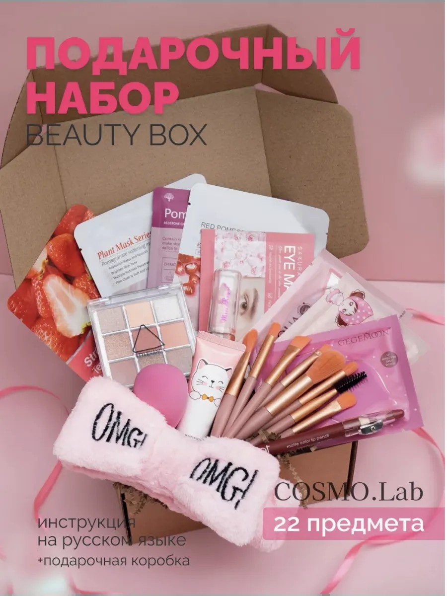 Праздничный подарочный набор косметики, порадует любую даму! Внутри косметического набора Вы найдете тканевые маски для лица, увлажняющий крем, косметическую повязку, патчи и многое другое. Beauty box представляет собой идеальный комплект для ухода за кожей, который подарит здоровье и красоту. Наш бьюти бокс содержит натуральные продукты, абсолютно безопасны для кожи. Уходовая косметика в этом наборе создана, чтобы вы могли насладиться процедурой и достичь безупречного состояния кожного покрова лица. Это отличный подарок как для подруги или коллеги, подростку, маме так и для важного события в жизни - Дня Учителя, День Рождения. Красота и внимание и лучшее для вас - в этой удивительной подборке. Не упустите шанс удивить себя или своих близких этим великолепным комплектом!