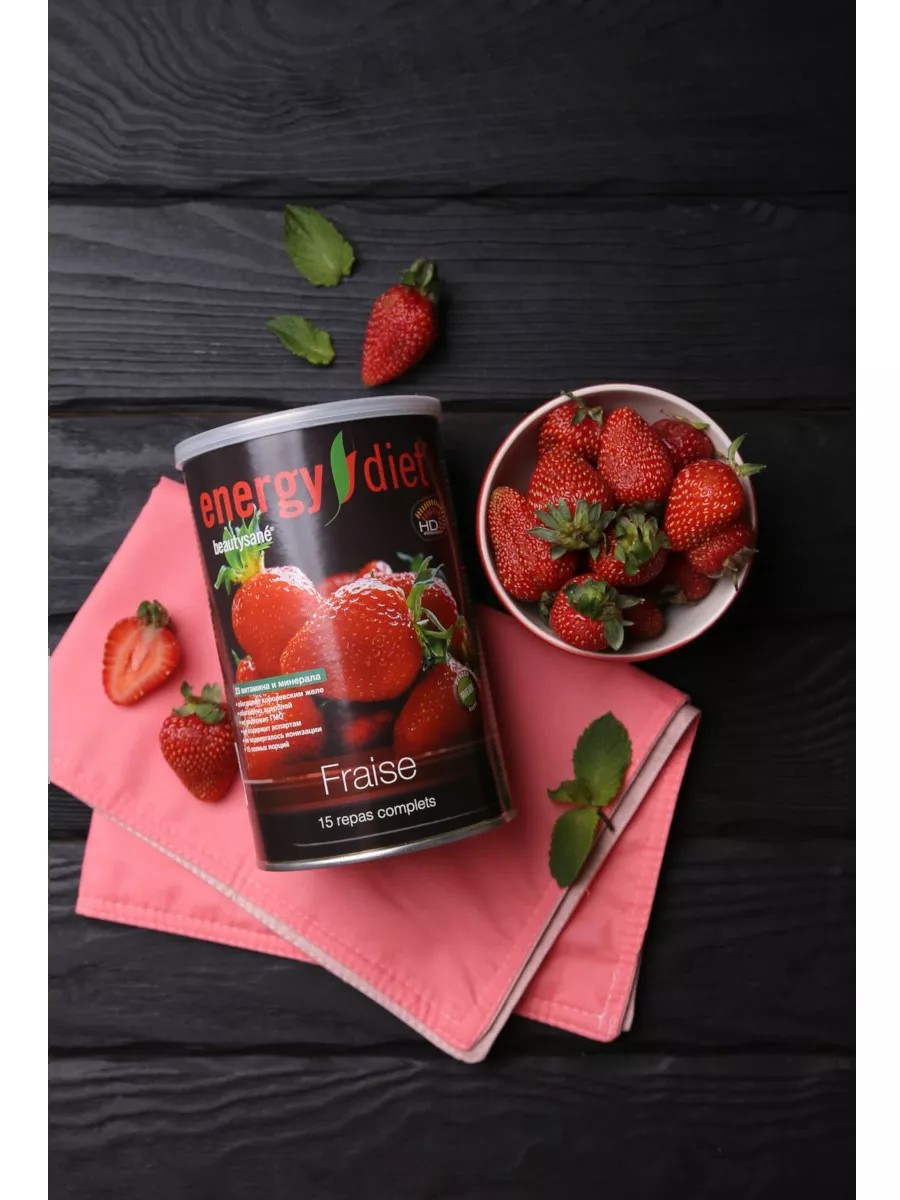 Произведено во ФранцииEnergy Diet Клубника – сладкий вкус спелых летних ягод. Смешанный с прохладным молоком, этот коктейль всегда заканчивается слишком быстро.