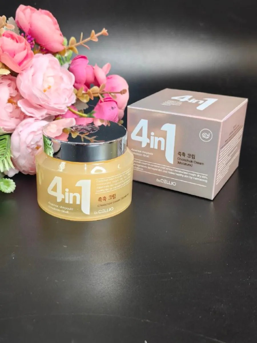 Snail Mucin Cream. A restorative face cream with snail mucin. This cream helps eliminate wrinkles, lighten age spots, awaken dormant skin cells, and restore a radiant, youthful appearance. Snail mucus filtrate interacts with skin collagen, alleviating dryness and fatigue while maintaining elasticity and moisture. The whitening ingredient niacinamide leaves skin clear and radiant. Directions: Apply a small amount of cream to your face using gentle movements.