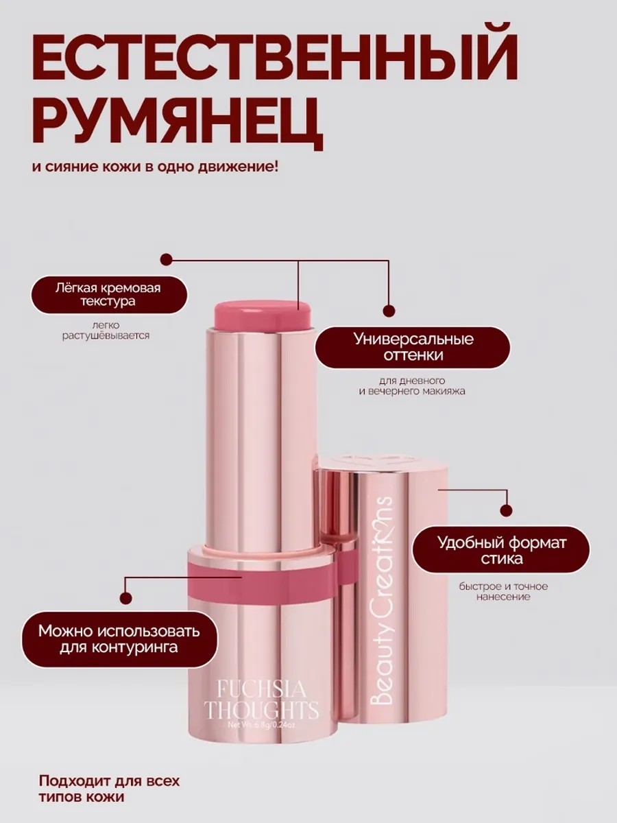 Beauty Creations Румяна стик для лица кремовый Fuchsia Thoughts