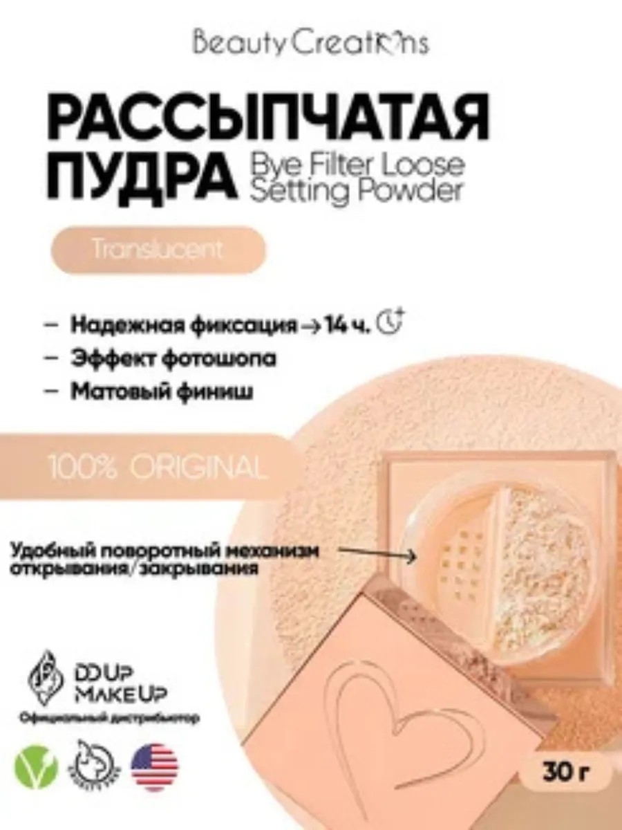 Beauty Creations Пудра рассыпчатая для лица Bye Filter, TRANSLUCENT