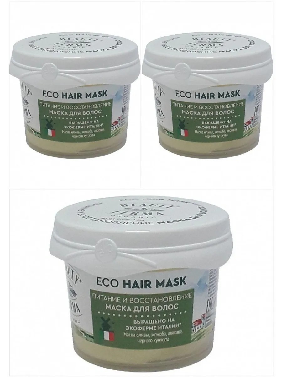 BEAUTY FERMA Маска для волос Питание и Восстановление, 100 мл 3 шт. Маска для волос BEAUTY FERMA Питание и восстановление ухаживает за волосами и придает блеск. Волосы более сильные уже после первого применения. Натуральное масло оливы с тосканской экофермы глубоко увлажняет и интенсивно питает по всей длине. Масло жожоба смягчает, облегчает расчесывание и уход. Масла авокадо и черного кунжута уплотняют и разглаживают структуру волос.