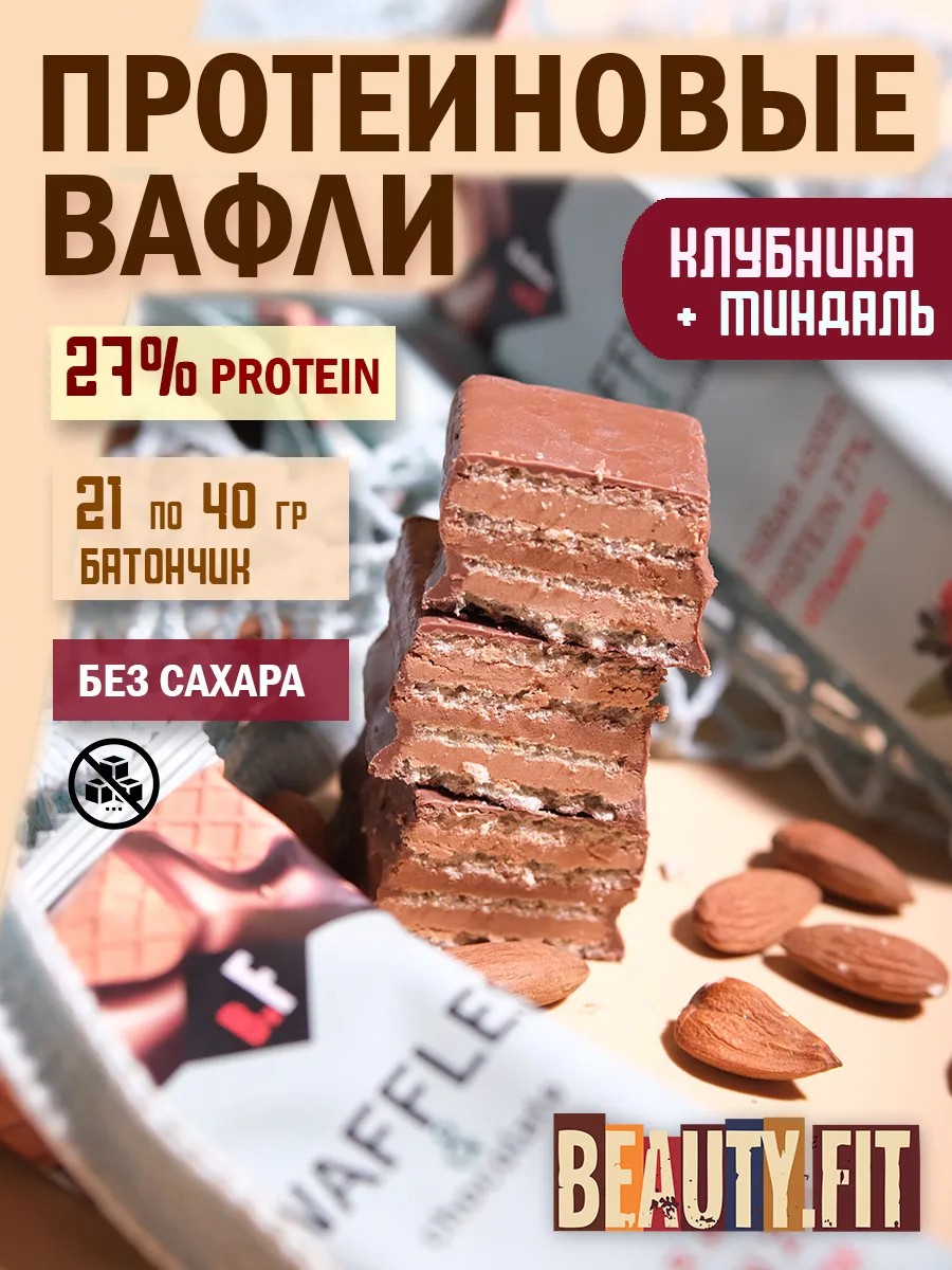 BEAUTY FIT Протеиновые вафли "Миндаль-клубника" 21 шт по 40 гр