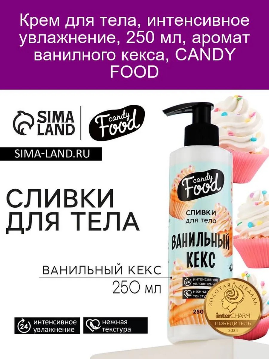 "Крем для тела CANDY FOOD «Интенсивное увлажнение»" — это идеальное средство для ухода за кожей. Его нежная текстура легко впитывается, оставляя на коже приятный аромат ванильного кекса.