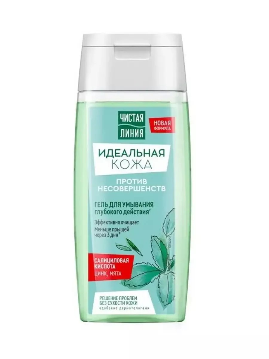 Гель для умывания глубокого действия Идеальная кожа очищает кожу и препятствует возникновению несовершенств. В состав геля входят природные компоненты мята, ромашка и цинк, способствующие обновлению кожи, уменьшению воспалений и устранению жирного блеска. В результате гель эффективно очищает и уменьшает несовершенства - прыщей становится меньше уже через 3 дня.