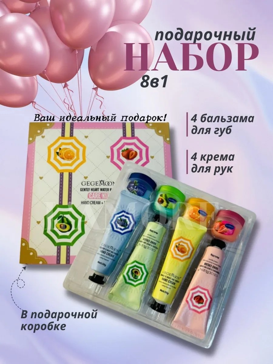 This gift set of hand creams and nourishing lip balms offers comprehensive skin care tailored to your individual needs. This set includes four luxurious moisturizing creams and four tubes of Vaseline lip balms with delicate fragrances for a truly enjoyable experience. These eco-friendly and natural cosmetics contain only beneficial and safe ingredients. This versatile product is suitable for hand, face, and body care, leaving skin soft, smooth, and supple. It instantly hydrates skin 100%, relieves irritation, and prevents flaking. Ideal for use at any time of year, it will protect your skin from dryness in hot weather, and in cold weather, it will maintain softness even in extreme cold. You will see results after just one use: your skin will look healthy and radiant all day long. Use before a manicure to soften cuticles, and after washing dishes or cleaning to prevent the negative effects of detergents. Can also be used as a nourishing treatment for the entire body. The anti-aging formula leaves no sticky or greasy feeling, has a light texture, and is instantly absorbed. These soothing and restorative creams are ideal for all skin types. Directions: Apply a small amount of hand cream to clean skin and gently massage until completely absorbed. The compact packaging makes it easy to take with you and use in any situation, and the convenient mini tube fits easily in even the smallest cosmetic bag. Our products are high quality and affordable, making them an excellent choice for daily skin care. This set, packaged in bright packaging, makes a chic gift for women on March 8th, New Year's, birthdays, and other holidays. These creams are also suitable for men's hand care. Everyone will appreciate high-quality care with a pleasant aroma.