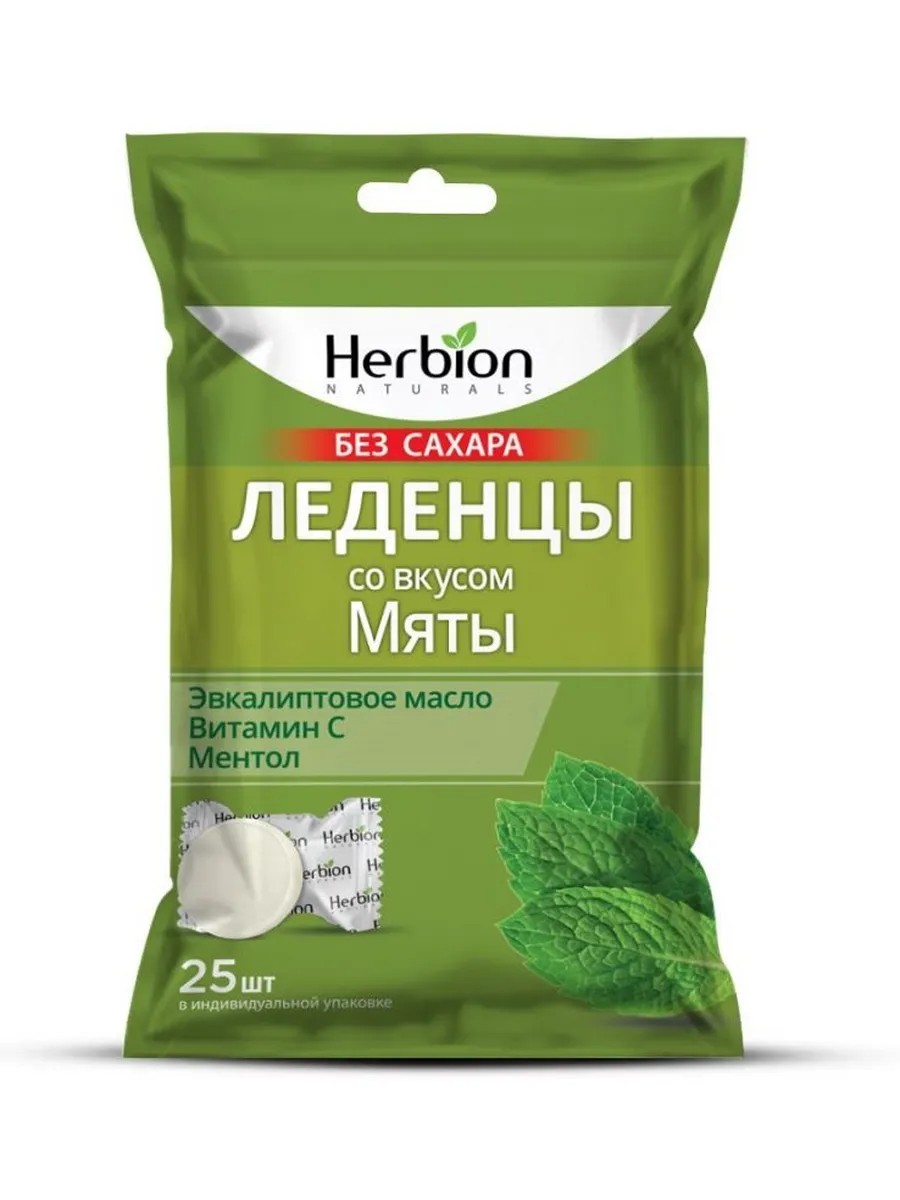 | Полное наименование товара | Herbion леденцы со вкусом мяты без сахара 25 шт. леденцы массой 2,5 г |