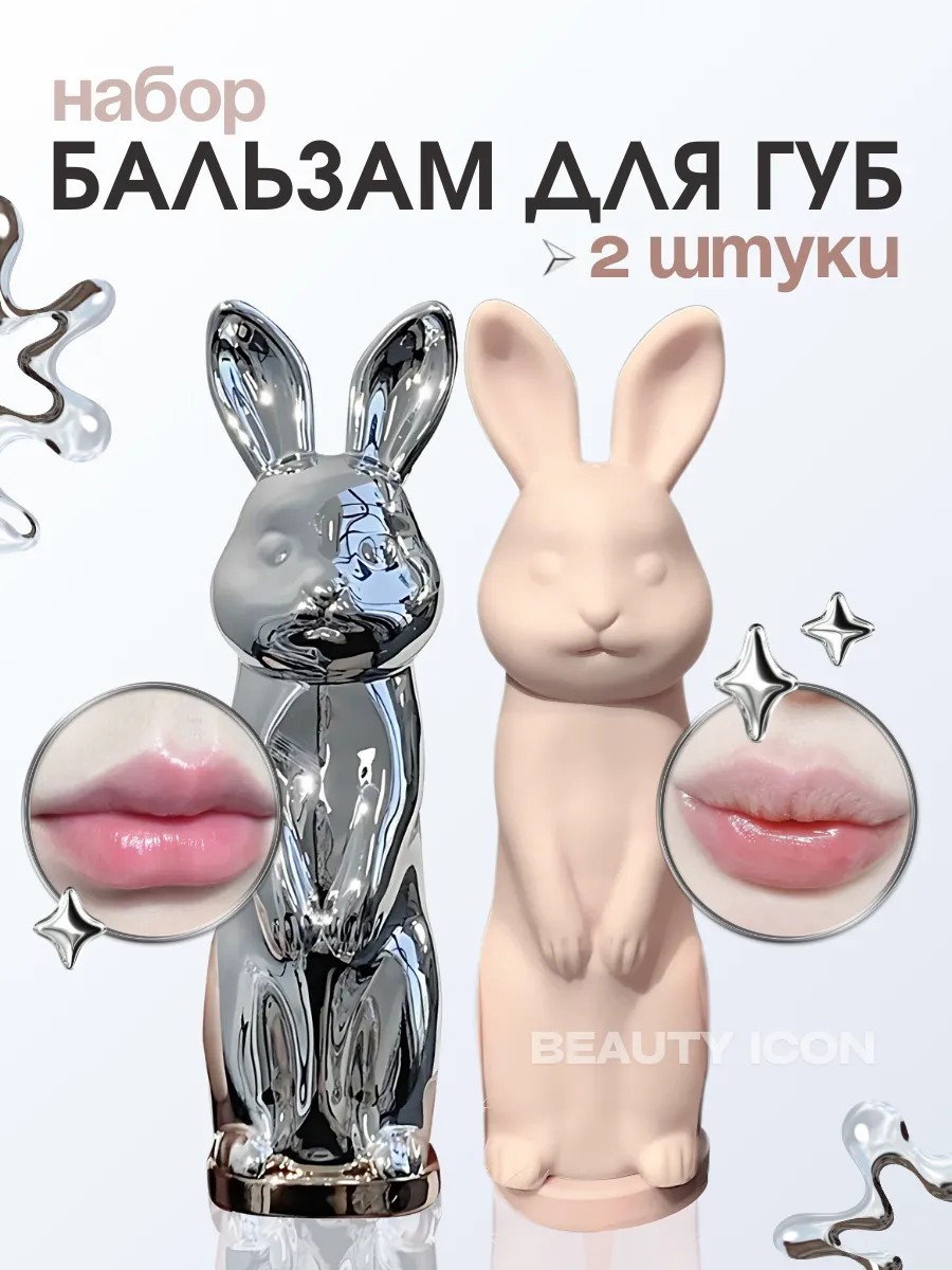 Набор из 2 бальзамов для губ: Бежевый и Хромовый зайчик.