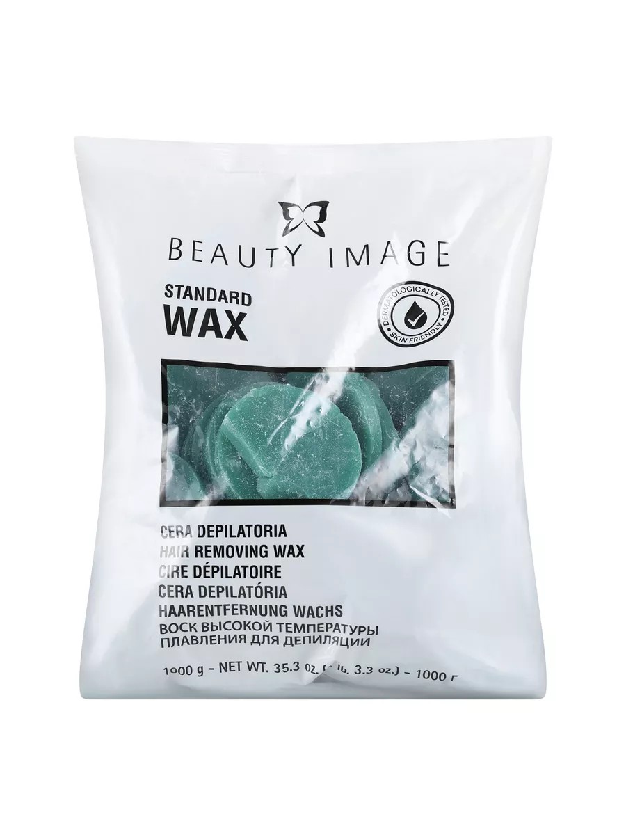 Hot wax for depilation "Standard" in discs, with algae, green, 1 kg. Natural wax is used to remove short and coarse hair on sensitive areas of the body, especially the bikini area and underarms. Thanks to its high working temperature, the product steams pores, facilitating the depilation process and making it less painful.