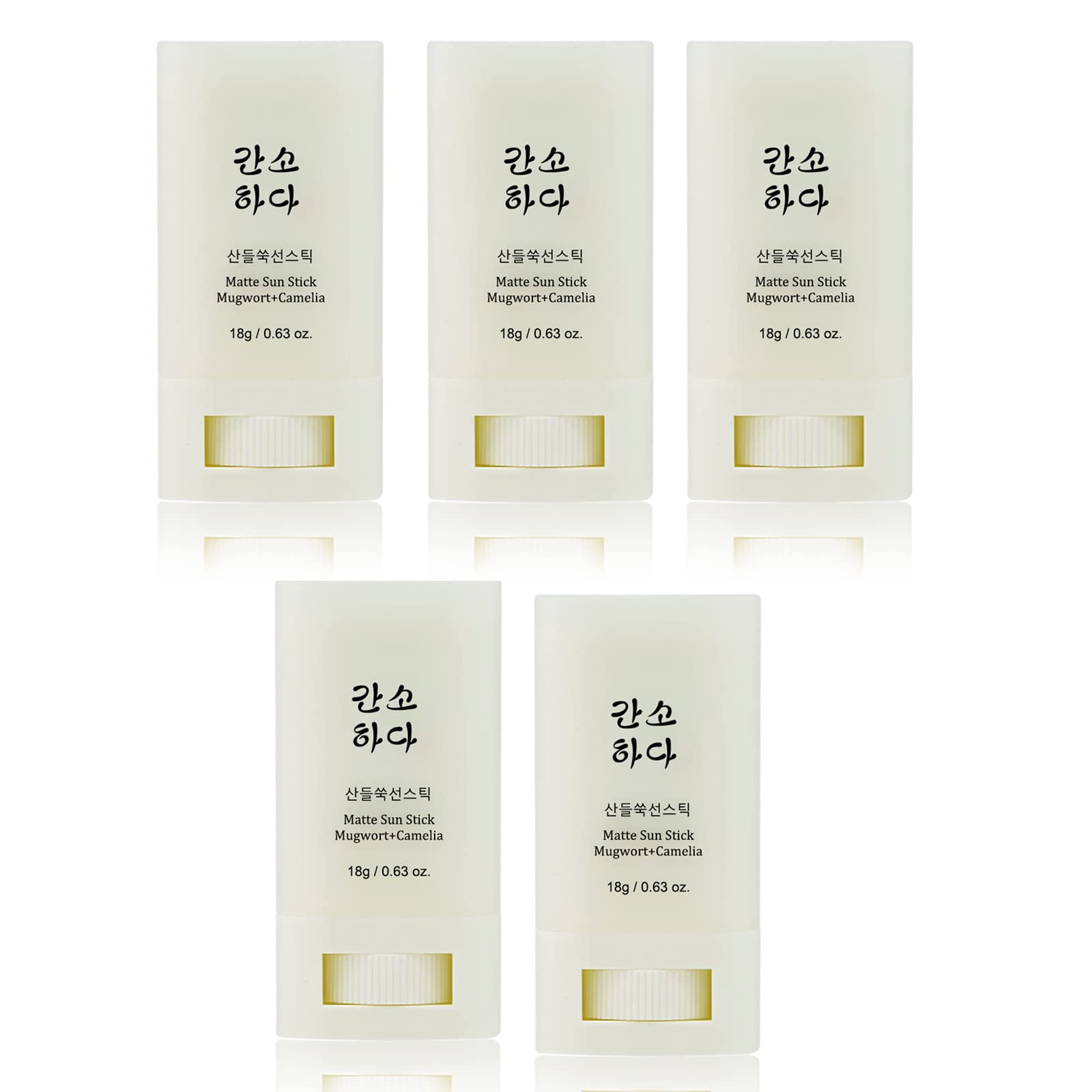 Beauty of Josaon Matte sun stick Mugwort+Camelia Beauty of Josaon Relief Sun Organic Sunscreen SPF50 Beauty of Josaon Sun Cream Glow Deep Serum for All Skin Types(0.63Oz) (5PCS)