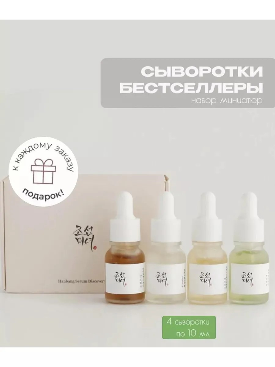 Набор миниатюр с сыворотками-бестселлерами Beauty of Joseon Hanbang Serum Discovery Kit обладает широким спектром функций: успокаивает и помогает в лечение воспалений, интенсивно увлажняет и возвращает сияние, мягко осветляет и выравнивает тон, активизирует процессы регенерации и повышает эластичность.
