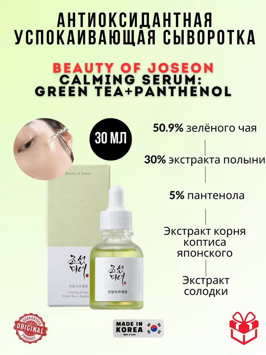 Beauty of Joseon Успокаивающая сыворотка Calming Serum: Green tea+Panthenol