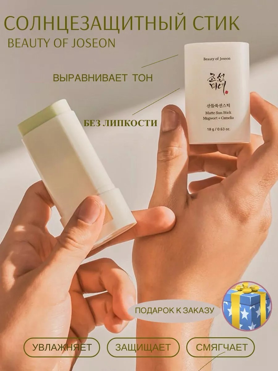 Матирующий солнцезащитный стик Beauty of Joseon Matte Sun Stick Mugwort+Camelia SPF50+ PA++++ обеспечивает надёжную защиту от ультрафиолета, оставляя естественный матовый финиш без липкости и жирной плёнки.