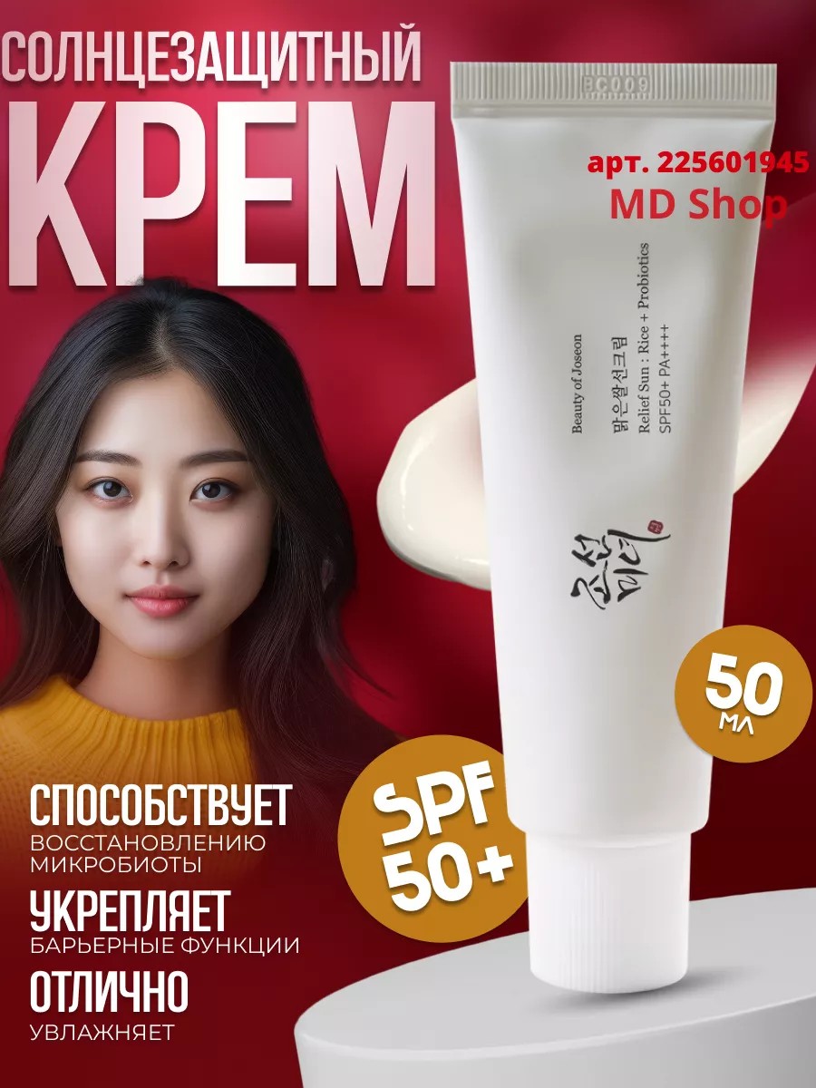 Солнцезащитный крем с пробиотиками Beauty of Joseon Relief Sun : Rice + Probiotics SPF 50+ PA++++ надёжно защищает кожу от разрушающего воздействия УФ-лучей типов UVA и UVB, блокирует синтез меланина и сводит к минимуму риск появления пигментации. В основе экстракт риса и пробиотики, а также современные химические фильтры, в равной степени обеспечивает надёжную защиту от пагубных воздействий солнечных лучей, препятствуют фотостарению. Способствует восстановлению микробиоты, укрепляет барьерные функции и отлично увлажняет.