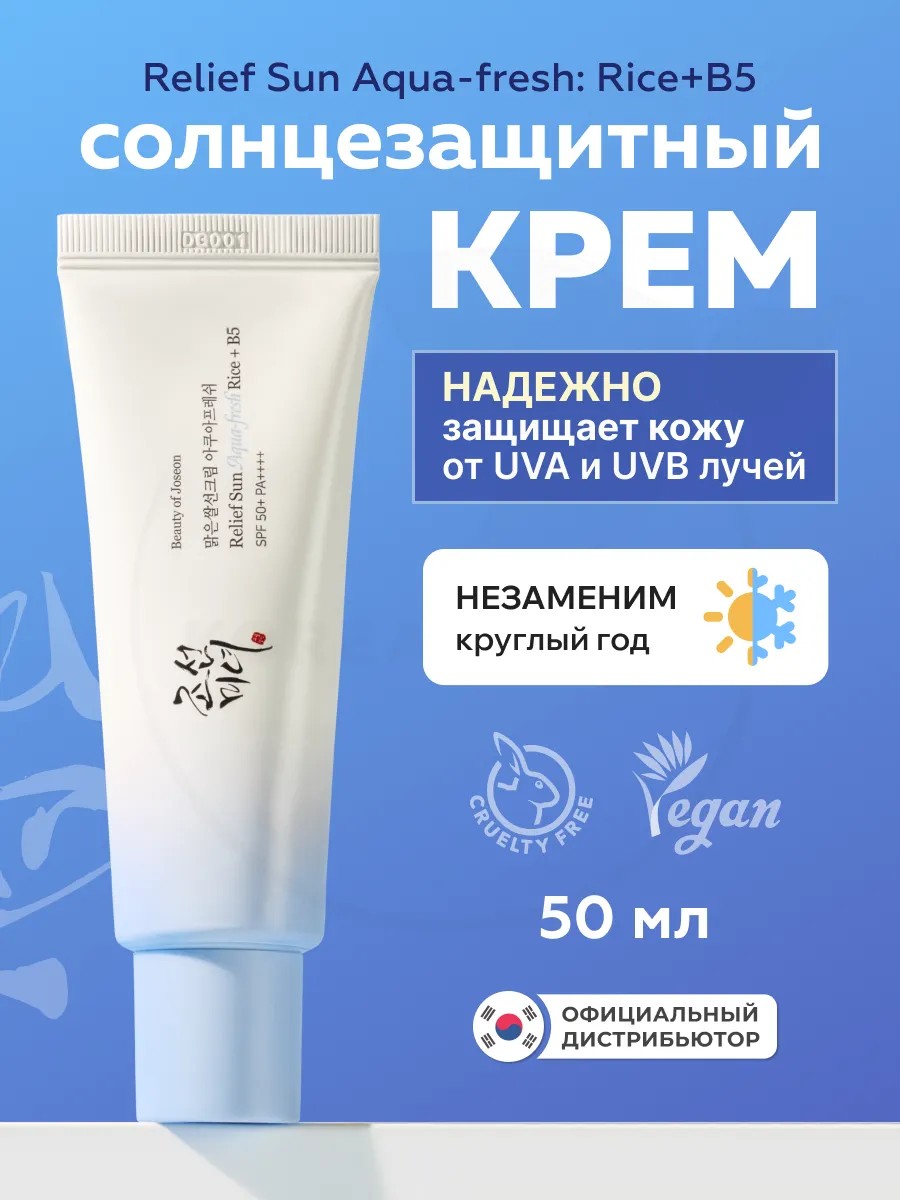 Ультралёгкий солнцезащитный крем Relief Sun Aqua-fresh: Rice + B5 Beauty of Joseon — это универсальное средство для защиты и ухода за кожей лица с SPF 50+. Благодаря своей легкой текстуре, крем обеспечивает интенсивное увлажнение и защиту от солнечных лучей. Это идеальный выбор для тех, кто ищет комфортный дневной крем, который не оставляет липкости и не вызывает ощущения тяжести.