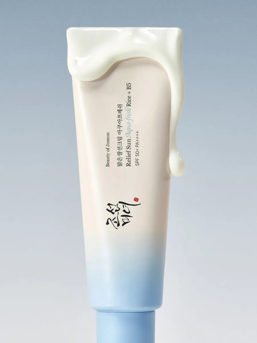 Beauty of Joseon Relief Sun Aqua-Fresh Rice + B5 SPF50+ PA++++ (BoJ spf) is a lightweight, watery sunscreen that provides effective protection against UVA and UVB rays while moisturizing and soothing skin.