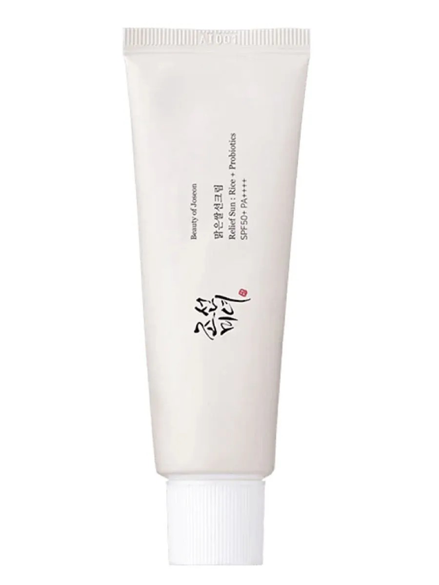 Beauty of Joseon Relief Sun: Rice + Probiotics SPF 50+ PA++++ sunscreen with probiotics reliably protects skin from the damaging effects of UVA and UVB rays, blocks melanin synthesis, and minimizes the risk of pigmentation. It promotes the restoration of the skin's microbiota, strengthens barrier function, and provides excellent hydration. Contains rice extract, green tea leaf extract, coconut extract, ginseng extract, and next-generation chemical filters.