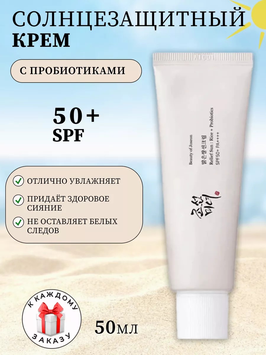 Beauty of Joseon Relief Sun: Rice + Probiotics SPF50+ PA++++ sunscreen with probiotics reliably protects skin from the damaging effects of UVA and UVB rays, blocks melanin synthesis, and minimizes the risk of pigmentation.