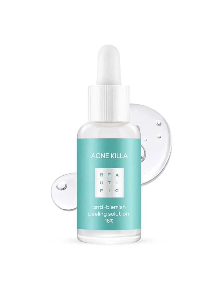 Хочешь раскрыть потенциал своей кожи по максимуму? Встречай новый пилинг-гель для проблемной кожи ACNE KILLA от Beautific! Благодаря 18% концентрации AHA- и BHA- кислот - самых трендовых компонентов для профессионального салонного пилинга - средство буквально "стирает" все несовершенства и очищает кожу на всех уровнях. Цинк, известный своими балансирующими свойствами, помогает активно бороться с акне, эффективно контролирует себовыделение, тем самым предотвращая появление новых воспалений, а также стимулирует клеточное дыхание, освобождает поры, удерживает влагу в клетках. Результат - рельеф кожи становится заметно ровнее, уменьшаются следы постакне, шрамов и неровностей. Разработано без силиконов, парабенов, минеральных масел. Способ применения: равномерно нанеси средство на предварительно очищенную кожу лица и шеи. Избегай зоны вокруг глаз и губ. Оставь на 3-10 минут. Тщательно смой теплой водой. Не используй дольше 10 минут.