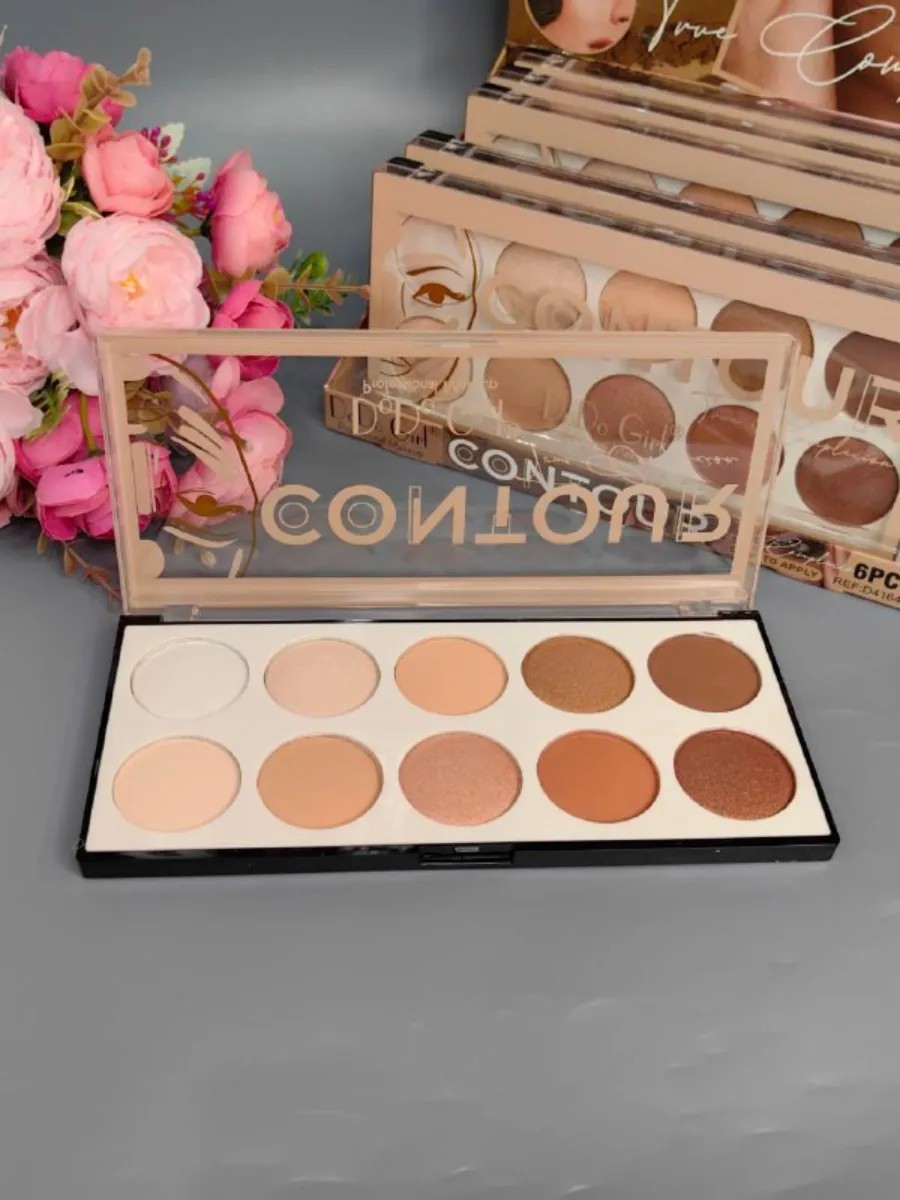This face palette will become your indispensable assistant in creating the perfect makeup look! This palette contains 10 diverse shades, including both matte and shimmery ones, so you can achieve various effects and define your facial contours. This versatile 3-in-1 product combines highlighter, bronzer, and powder, making it ideal for contouring. Thanks to the face primer in this palette, your makeup will look flawless all day long. You'll find not only a face contourer but also correctors, liquid blush, concealers in various shades, including light and dark, as well as cream and powder contouring products to suit your preferences.