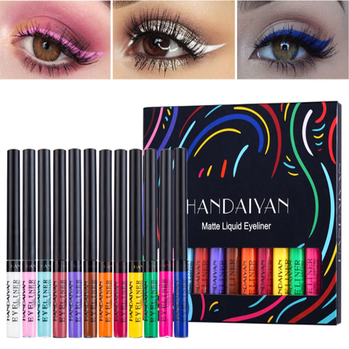 Features: 1. Skin-friendly fine sponge tip, soft and non-irritating. 2. Easy to dye, quick-drying, long-lasting makeup without smudging. Gently draw the eyeliner in a stroke. 3. Long-lasting care, waterproof, matte colorful effect. 4. Quick-drying formula, makeup can be removed in 3 seconds and cleaned instantly, without worrying about pigmentation. 5. 12 different types of matte eyeliner can meet your different makeup needs for work, data and daily life. Package contents: 12 colors eyeliner pen set Tips: 1. Keep away from children and fire. 2. Store it in a cool place and avoid direct sunlight. 3. If you forgot to cap the pen and let the pen tip dry, you can put the pen tip in clean water and use it. 4. Do not cut immediately after use, wait 2-3 minutes for it to dry and then the flash can last all day. 5. Due to the lighting effect and computer color, the actual color may be slightly different from the image. Please note the actual color received. Thank you for your understanding. ?Perfect Gift: Ideal for party, cosmetic show, live show, gala night, dance party and wedding makeup. Various celebrations are the perfect gift for your friends, bestie, family. ?Long lasting: waterproof, colorful effect. All colors are highly pigmented to match your charming makeup. They can last at least 12 hours, so you don't have to worry about makeup to lose weight. ?Easy to Remove: The liquid eyeliner is also easy to remove with a makeup remover and clean up quickly, without having to worry about pigmentation. ?Highly pigmented: The matte colorful liquid eyeliner is easy to apply and colored, natural and comfortable formula that glides on a smooth, highly precise tip that draws sharp lines and intense colors. ?Perfect Makeup: Unique texture, liquid eyeliner, smooth the eye area with a soft brush, dries quickly to get a perfect eye makeup, and combine different colors to create a unique eye makeup.Set van 12 kleuren matte vloeibare eyeliner, kleurrijk, waterdicht, veegvast, duurzaam matte eyeliner, heldere eyeliner, sterk gepigmenteerde make-up eyeliner pen kit Kenmerken: 1. Huidvriendelijke fijne sponspunt, zacht en niet irriterend. 2. Gemakkelijk te verven, sneldrogende, langdurige make-up zonder vlekken. Trek de eyeliner voorzichtig met een streep. 3. Duurzame verzorging, waterdicht, mat kleurrijk effect. 4. Sneldrogende formule, make-up kan in 3 seconden worden verwijderd en wordt direct gereinigd, zonder je zorgen te hoeven maken over pigmentatie. 5. 12 verschillende soorten matte eyeliner kunnen aan je verschillende make-upbehoeften voor werk, gegevens en het dagelijks leven voldoen. Inhoud van de verpakking: 12 kleuren eyeliner pennenset Tips: 1. Uit de buurt van kinderen en vuur houden. 2. Bewaar het op een koele plaats en vermijd direct zonlicht. 3. Als je vergeten bent de dop van de pen af te dekken en de punt van de pen te laten drogen, kun je de punt van de pen in schoon water leggen en gebruiken. 4. Knip niet direct na gebruik, wacht 2-3 minuten tot het droog is en dan kan de flitser de hele dag meegaan. 5. Vanwege het lichteffect en de computerkleur kan de werkelijke kleur enigszins afwijken van de afbeelding. Let op de daadwerkelijk ontvangen kleur. Bedankt voor je begrip. ?Perfect cadeau: ideaal voor feest, cosmeticashow, live show, galanacht, dansfeest en bruiloftsmake-up. Verschillende feesten zijn het perfecte cadeau voor je vrienden, bestie, familie. ?Langdurig: waterdicht, kleurrijk effect. Alle kleuren zijn sterk gepigmenteerd om aan je charmante make-up te voldoen. Ze kunnen ten minste 12 uur duren, zodat je je geen zorgen hoeft te maken over make-up om af te vallen. ?Eenvoudig te verwijderen: de vloeibare eyeliner is ook gemakkelijk te verwijderen met een make-up remover en snel schoon te maken, zonder je zorgen te hoeven maken over pigmentatie. ?Sterk gepigmenteerd: de matte kleurrijke vloeibare eyeliner is gemakkelijk aan te brengen en gekleurd, natuurlijke en comfortabele formule die glijdt op een gladde, zeer nauwkeurige punt die scherpe lijnen en intense kleuren tekent. ?Perfecte make-up: unieke textuur, vloeibare eyeliner, maak het gebied rond de ogen glad met een zachte borstel, droogt snel om een perfecte oogmake-up te krijgen en combineer verschillende kleuren om een unieke oogmake-up te creëren.