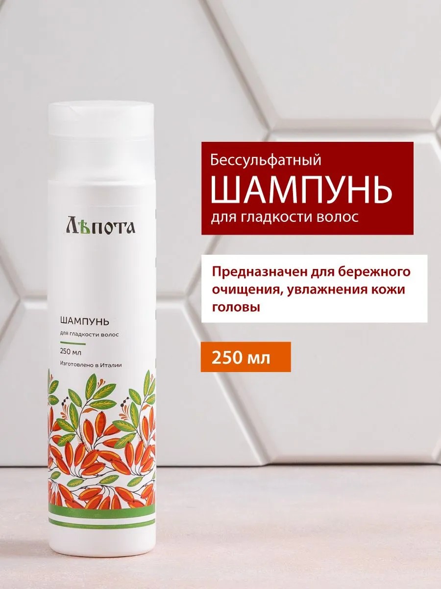 ЛЕПОТА Бессульфатный шампунь для гладкости волос, 250 мл