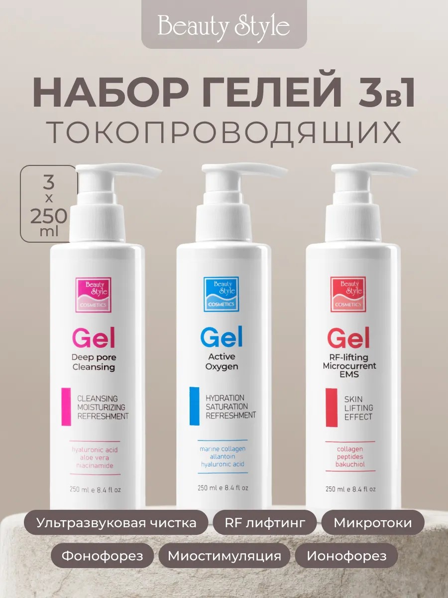 Beauty Style Гели для микротоков и ультразвуковой чистки, набор 3х300 мл