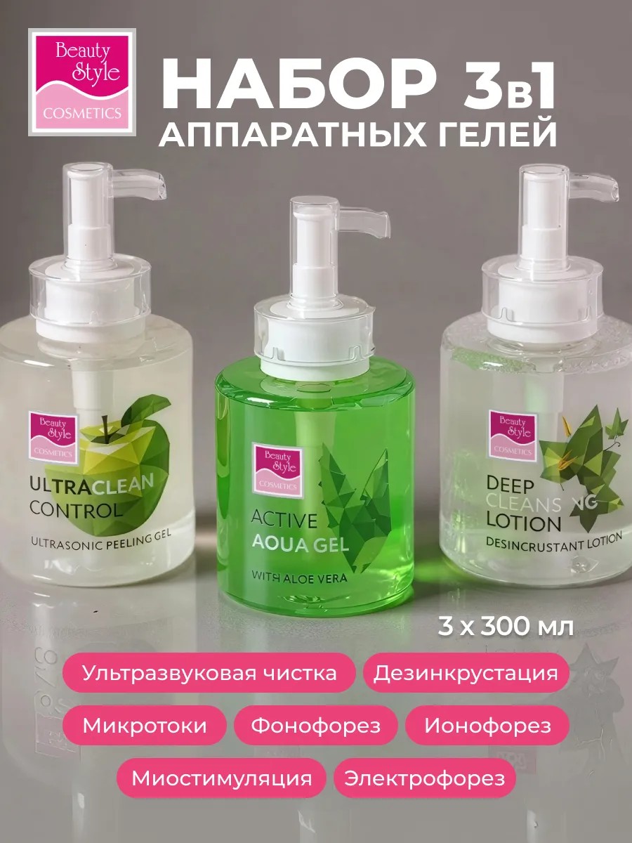Beauty Style Гели для микротоков, ультразвуковой чистки, набор 3х300 мл