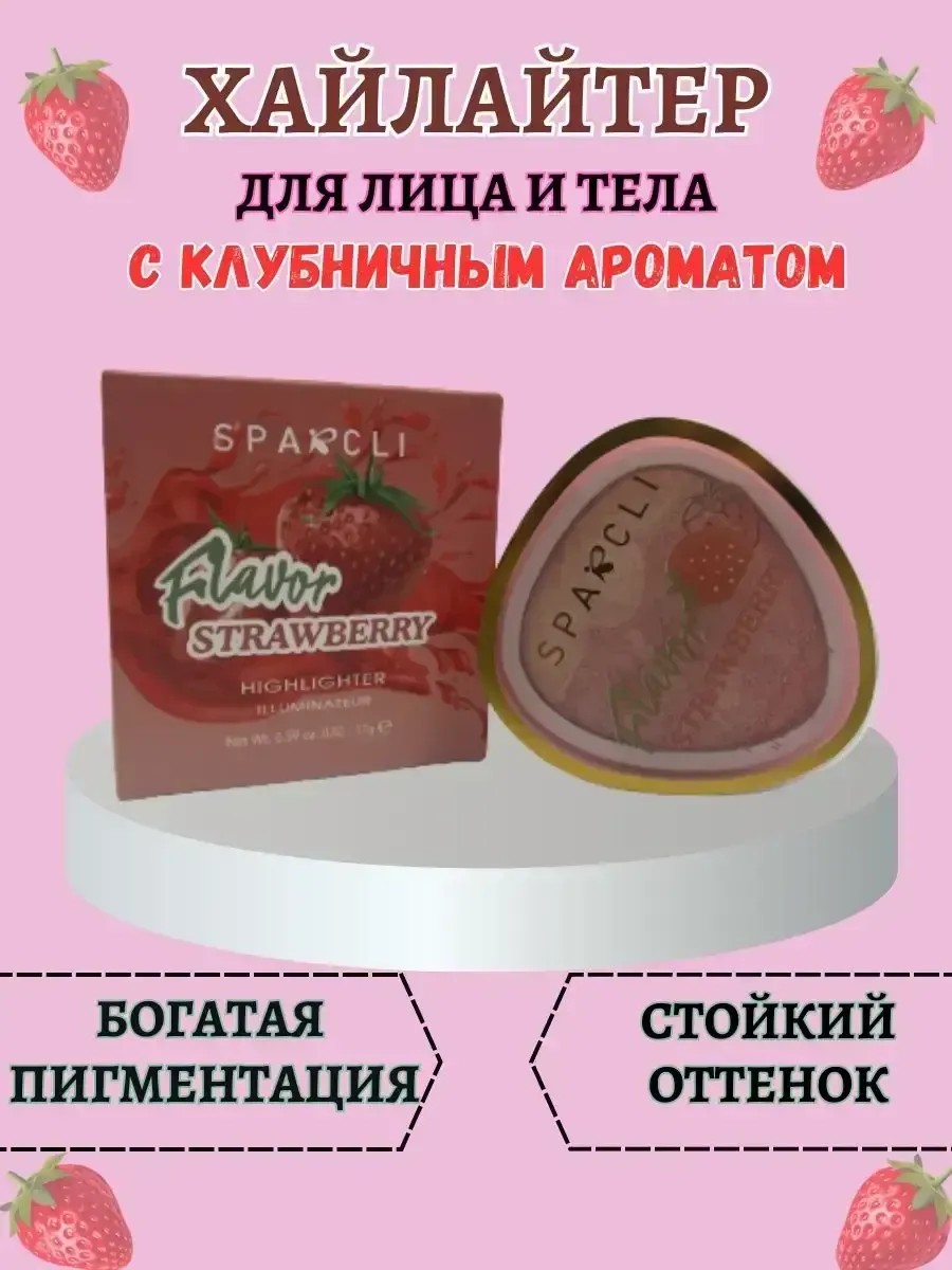 Пудровый хайлайтер-это уникальная пудра с мельчайшими сияющими частицами, которая буквально сливается с кожей и придает ей естественное сияние. Фруктовый хайлайтер подарит твоей коже объемное, естественное сияние. Активные компоненты, входящие в состав пудпры, мгновенно преображают, скрывают следы усталости, оставляя равномерный сияющий эффект. Рассыпчатый стик, бронзер, база для мейк апа. Двойной хайлайтер для лица Sparcli Highlighter Illuminateur Peach Flavor сделает ваше лицо более выразительным, а также идеально подойдет в качестве шиммера для тела, что придаст образу особый шарм. Пудра для лица отлично растушевывается, позволяя добиться отдохнувшего, здорового цвета лица и обладает хорошей стойкостью. Пудровый хайлайтер это идеальный помощник на все случаи жизни. Хайлайтер с ароматом клубники сможет стать изысканным завершением любого образа: нейтрального дневного макияжа, яркого smoky eyes или классического со стрелками. Способ применения: Используйте для высветления отдельных зон: верхняя часть скул, область под бровью, спинка носа и внутренние уголки глаз. Для идеального эффекта наносите кистью для румян из натурального ворса, веерообразной кистью или кистью в форме перевернутого треугольника. Может быть использован как шиммер для тела.