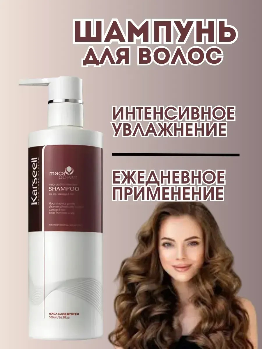 The shampoo contains hydrolyzed collagen, keratin, glycol, tocopheryl acetate, and macadamia, which are aimed at restoring hair structure, strengthening its roots, and preventing moisture loss.