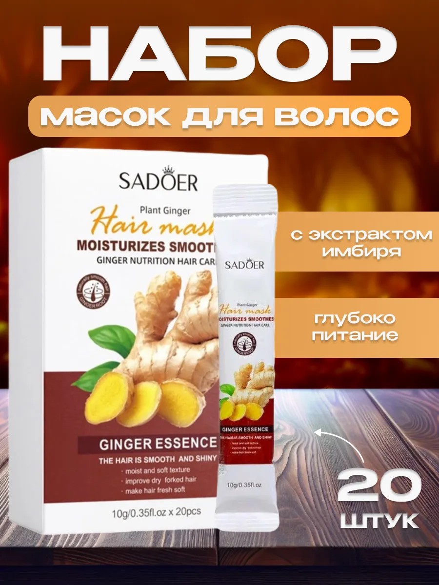 | Комплектация | Маски для волос с имбирем 20 пакетиков; маска для сухих и ломких волос; маска для волос против выпадения; восстанавливающая маска для волос; питательная маска для волос; укрепляющая маска для волос |