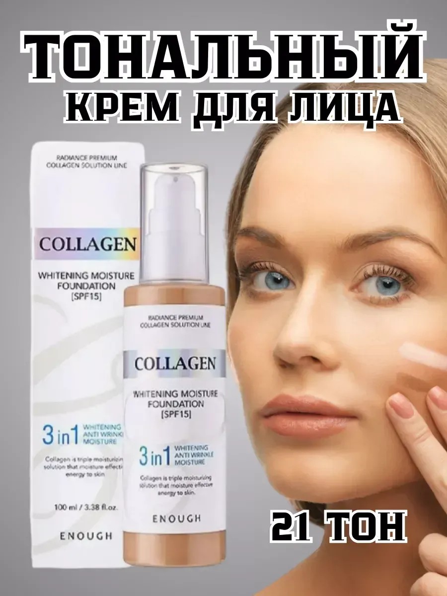 Тональный крем для лица - это универсальное средство, предназначенное для ухода за кожей лица всех типов. Благодаря содержанию в составе SPF 15+, он обеспечивает защиту кожи от вредного воздействия солнечных лучей. Крем обладает водостойкостью, что делает его идеальным выбором для использования в течение всего дня.Основные действия крема включают матирование, обновление цвета и отбеливание кожи, что помогает достичь естественного и здорового вида лица. Состав, обогащенный экстрактом центеллы, медью, ниацинамидом, гиалуроновой кислотой, гидролизованным коллагеном, алоэ верой и пантенолом, обеспечивает глубокое увлажнение и питание кожи, способствуя ее восстановлению и улучшению цвета.Такие компоненты как коллаген, ниацинамид и аденозин интенсивно увлажняют кожу, подтягивая и повышая эластичность эпидермиса, способствуют разглаживанию морщин и осветлению постакне. Для хорошего и ровного покрытия наносите на хорошо увлаженную кожу (после крема, базы под макияж, праймера). А также, за счёт содержания экстракта коллагена, бета-глюкана, гиалурона и азиатской центеллы, придает эластичность коже, увлажняет, контролирует выделение кожного жира и защищает от внешних факторов вредных для кожи.За счёт своих полезных компонентов, подходит всем типам коже, включая очень чувствительные и жирные типы кожи.Насыщенный состав позволяет не только улучшить внешний вид лица, но активно позаботиться о красоте и здоровье кожных покровов. С помощью натуральных компонентов тональная основа поддерживает оптимальный уровень влаги в тканях, успокаивает воспаления и сужает поры, тонизирует, изнутри разглаживает и защищает покровы. Продукт содержит солнцезащитные фильтры, естественным образом осветляет кожу, борется с нарушениями пигментации.