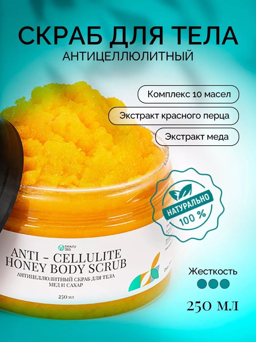 beauty365 Антицеллюлитный скраб для тела Мед и сахар, 250 мл