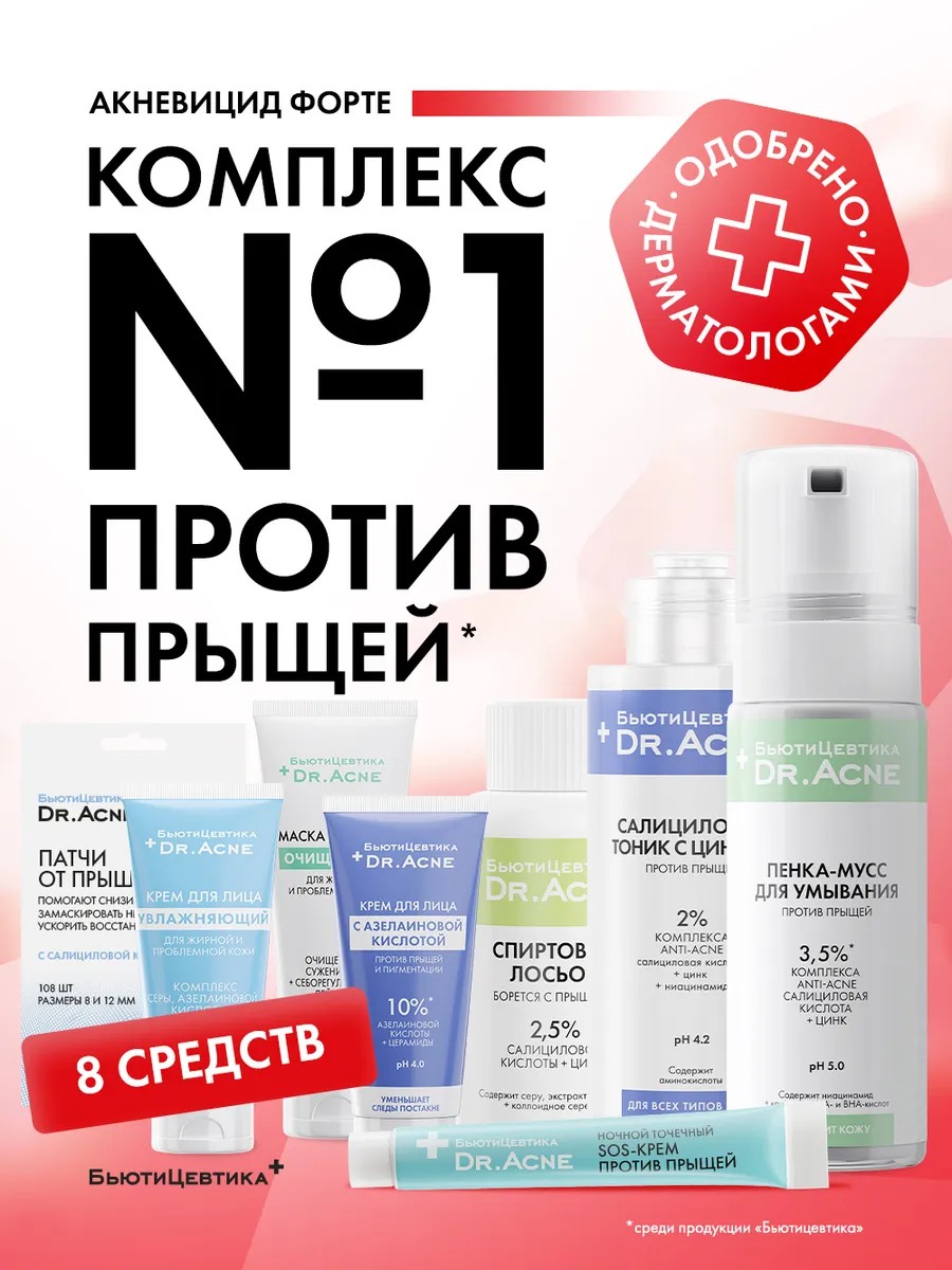 Набор "Акневицид Форте" – это комплексное решение для борьбы с прыщами, акне, идеально подходящее как для взрослых, так и для подростков. В состав входят: пенка - умывалка с салициловой кислотой, очищающий салициловый тоник - тонер без спирта, спиртовой лосьон, средство от воспалений, легкий увлажняющий дневной и ночной кремы, маска для лица с серой и цинком сужающая поры, а также наклейки от прыщей. Эти средства разработаны для проблемной, чувствительной, жирной и комбинированной, сухой кожи, обеспечивая качественный уход и видимый результат.
