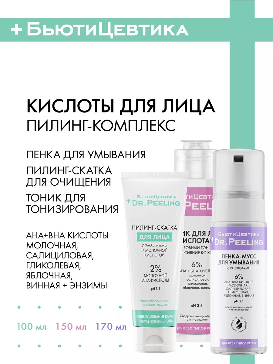 БьютиЦевтика Комплекс для лица с кислотами, скатка, пенка, тоник